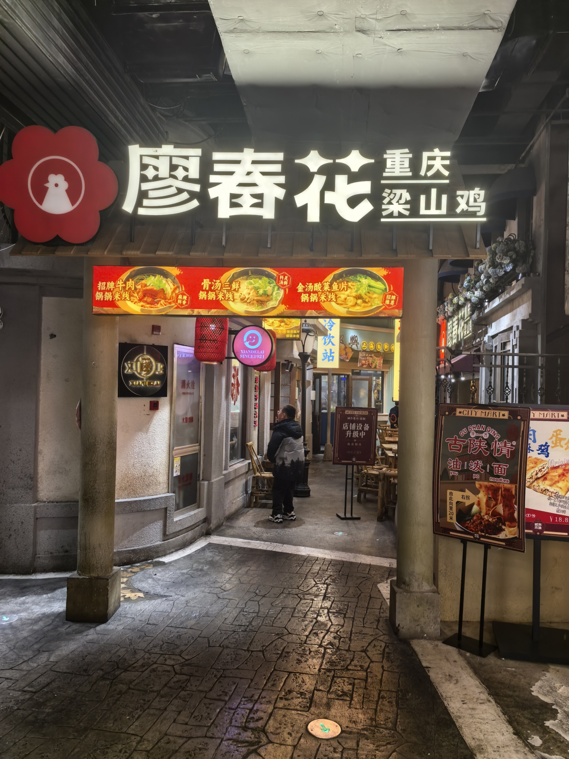 A city bazaar at a shopping mall in downtown Shanghai transports visitors back to the bustling life of longtang, or a type of small alley in old residential districts of Shanghai, known as a symbol of the city. The charm of tradition blended with modern fashion has attracted many visitors to the city bazaar to enjoy food, watch performance, go shopping, and take photos as keepsakes.