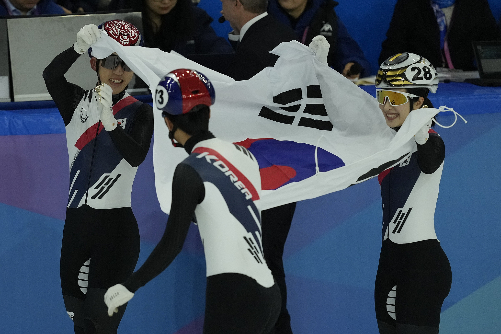 South Korea won the first gold medal of the ninth Asian Winter Games in Harbin, northeast China's Heilongjiang Province, in the short-track speed skating 2,000-meter mixed relay final on Saturday morning.