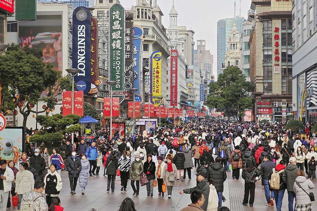 People walk on the Nanjing Road Walkway in east China's Shanghai, February 3, 2025. /VCG