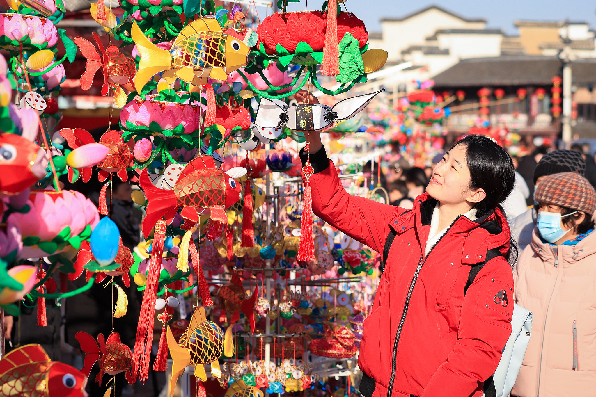 Colorful traditional handmade lanterns are a hot commodity in Nanjing, Jiangsu Province, as the Lantern Festival approaches. Crowds of visitors have flocked to the city's Confucius Temple scenic area to admire, select and purchase exquisite lanterns crafted by artisans in joyful anticipation of the upcoming festival, which falls on February 12 this year.