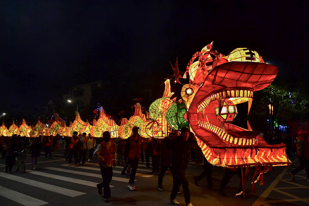 A vibrant dragon parade was held in Liancheng County, Fujian Province, drawing crowds of onlookers to celebrate the upcoming Lantern Festival.