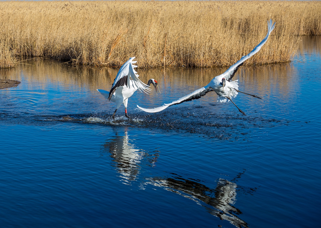 Red-crowned cranes in Zhalong National Nature Reserve, Qiqihar City, Heilongjiang Province, northeast China. /VCG
