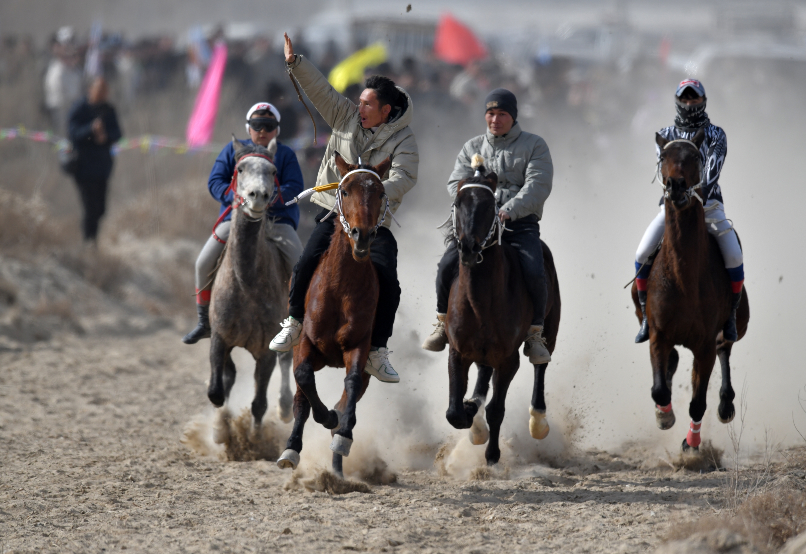 Horse racing is seen at a traditional sports festival for farmers and herders held in Yuli County, Xinjiang Uygur Autonomous Region, on February 16, 2025. /IC