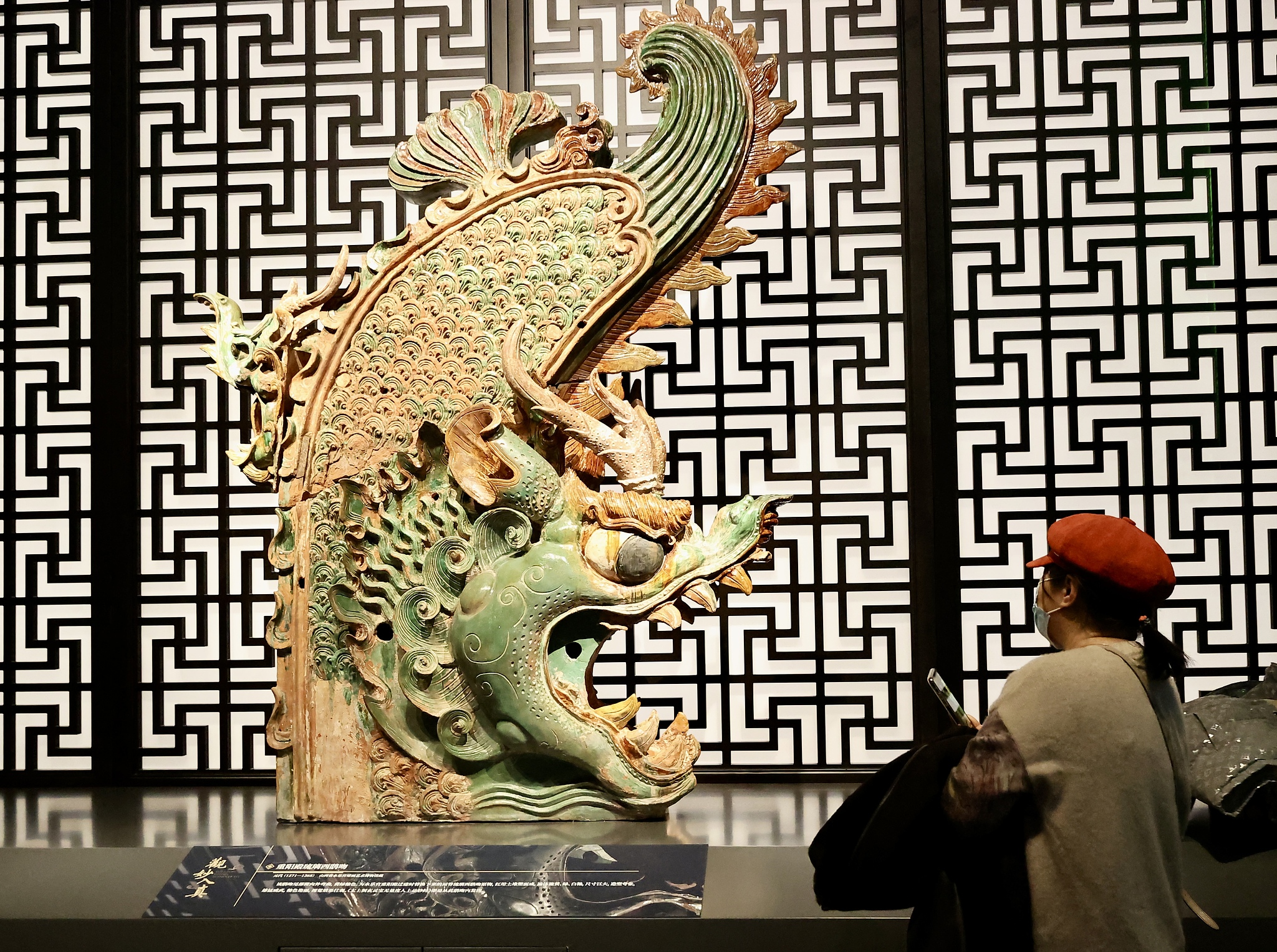 A Chiwen from the Chongyang Hall in the Yongle Palace in Shanxi Province is seen on display at a museum in Beijing on January 12, 2025. /VCG