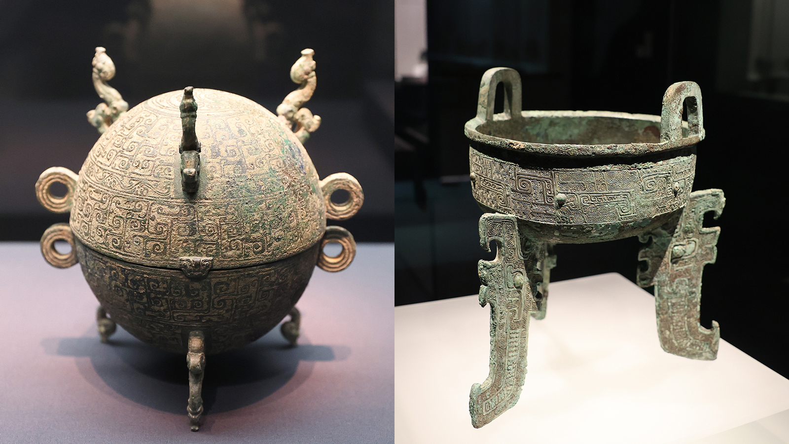 A bronze dui from the Warring States period exhibited at the National Museum of China (left), and the Dragon-patterned Tripod from the late Shang Dynasty housed in Shanghai Museum /VCG
