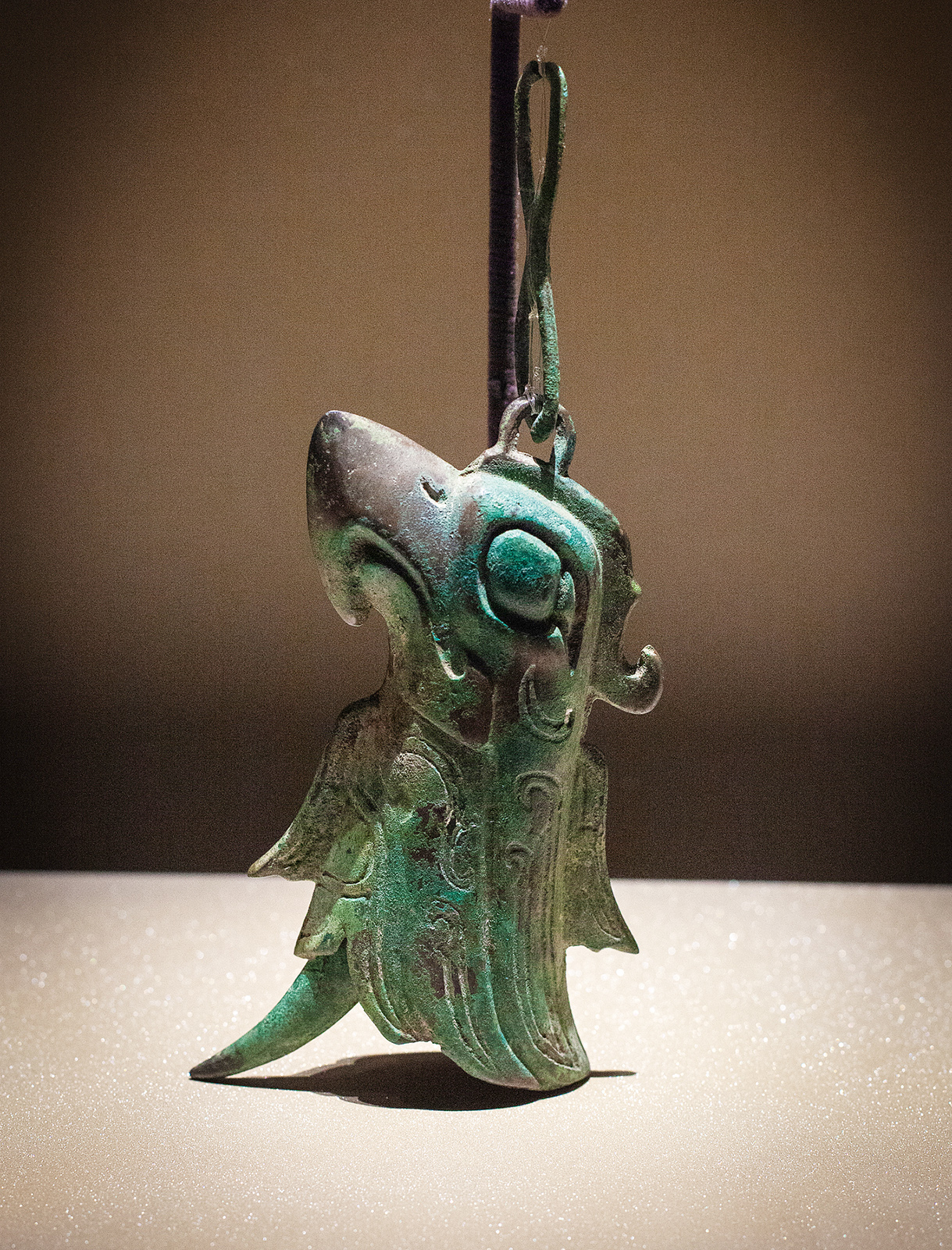 The bronze eagle-shaped bell is seen on display at the Sanxingdui Museum in Guanghan, Sichuan Province. /VCG