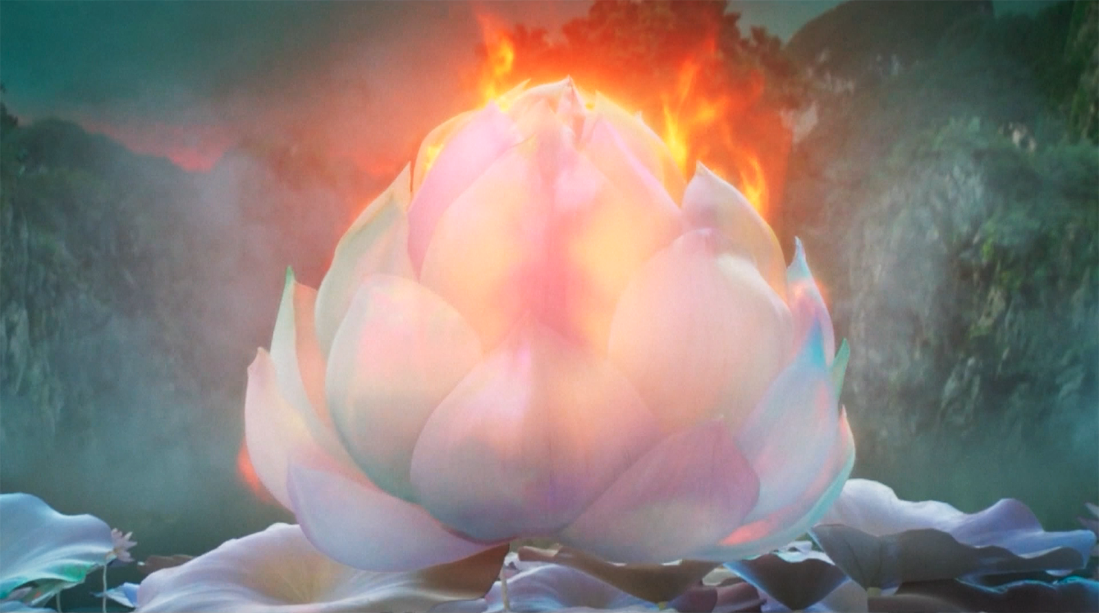 A screenshot of a scene from the Chinese animated film "Ne Zha 2" shows the Seven-colored Lotus. /CGTN