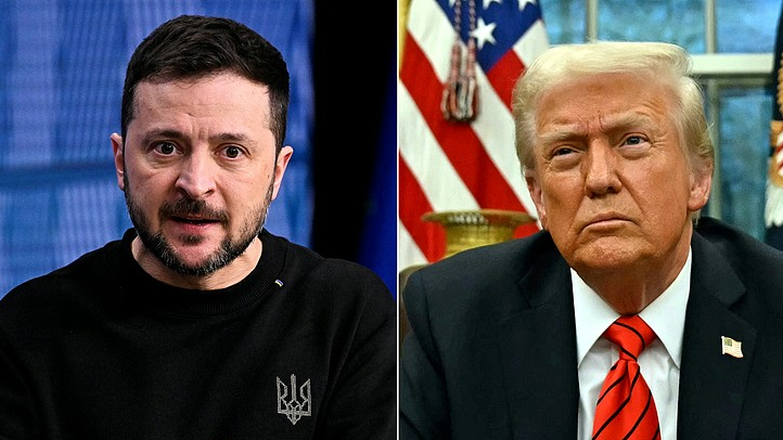 This combination of pictures shows Ukraine's President Volodymyr Zelenskyy (L) and U.S. President Donald Trump (R). The U.S. President Donald Trump called Ukrainian leader Volodymyr Zelensky a "dictator without elections" on February 19, 2025, stepping up his attacks as tensions soar between Kyiv and Washington. /CFP