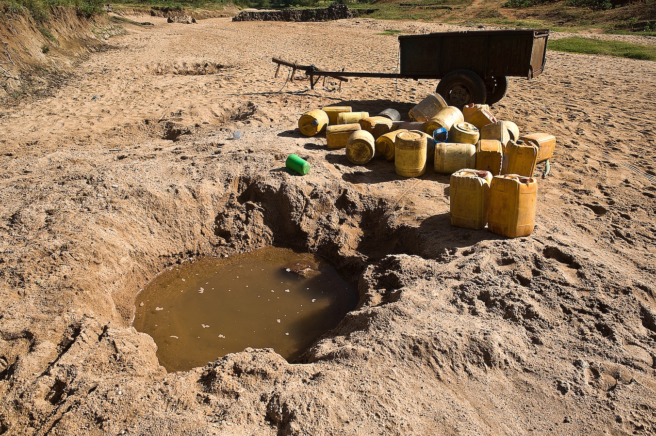 People collect water from a dry riverbed in Kenya. /VCG