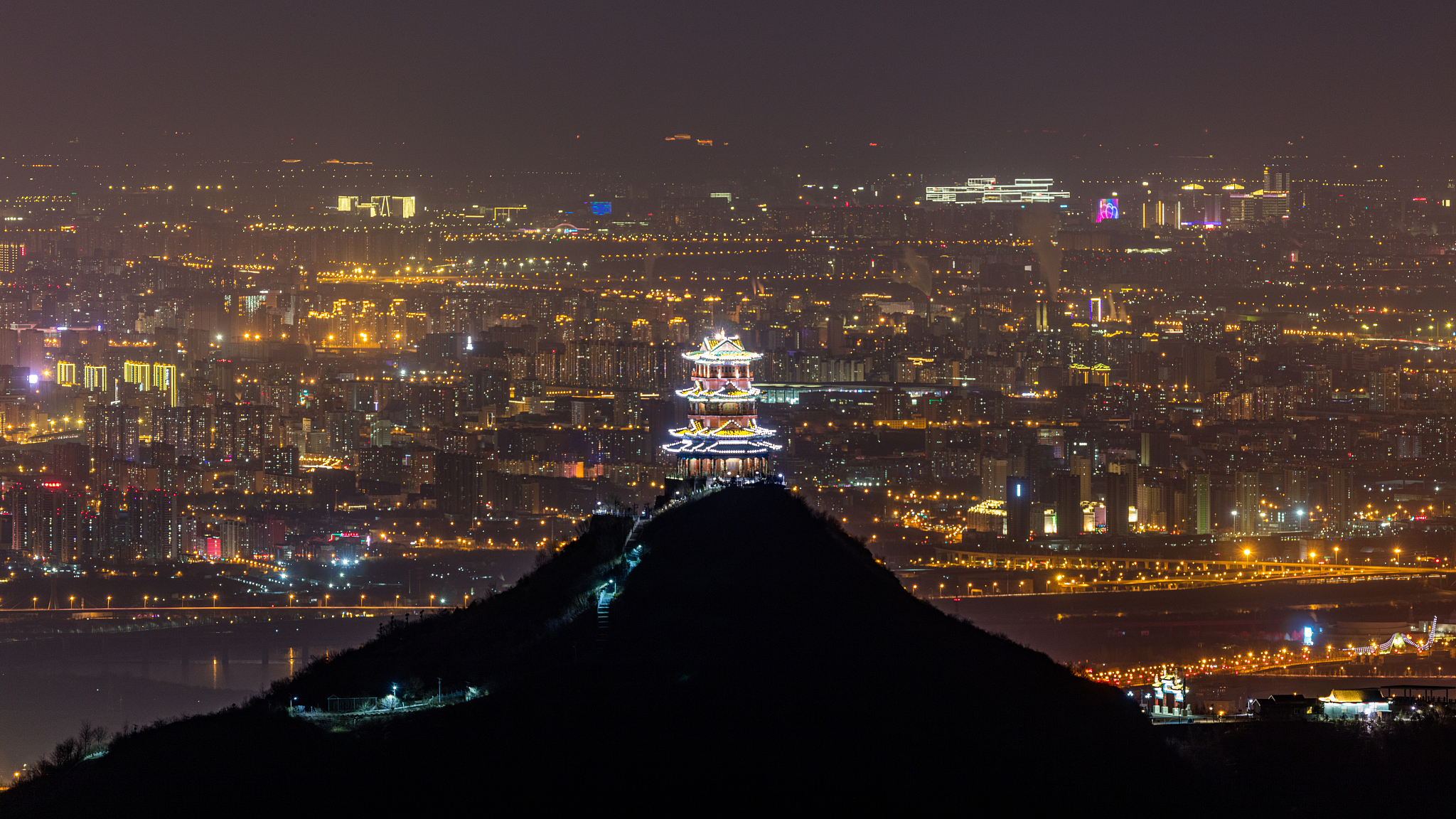 Dingdu Pavilion at night, January 24, 2023. /VCG