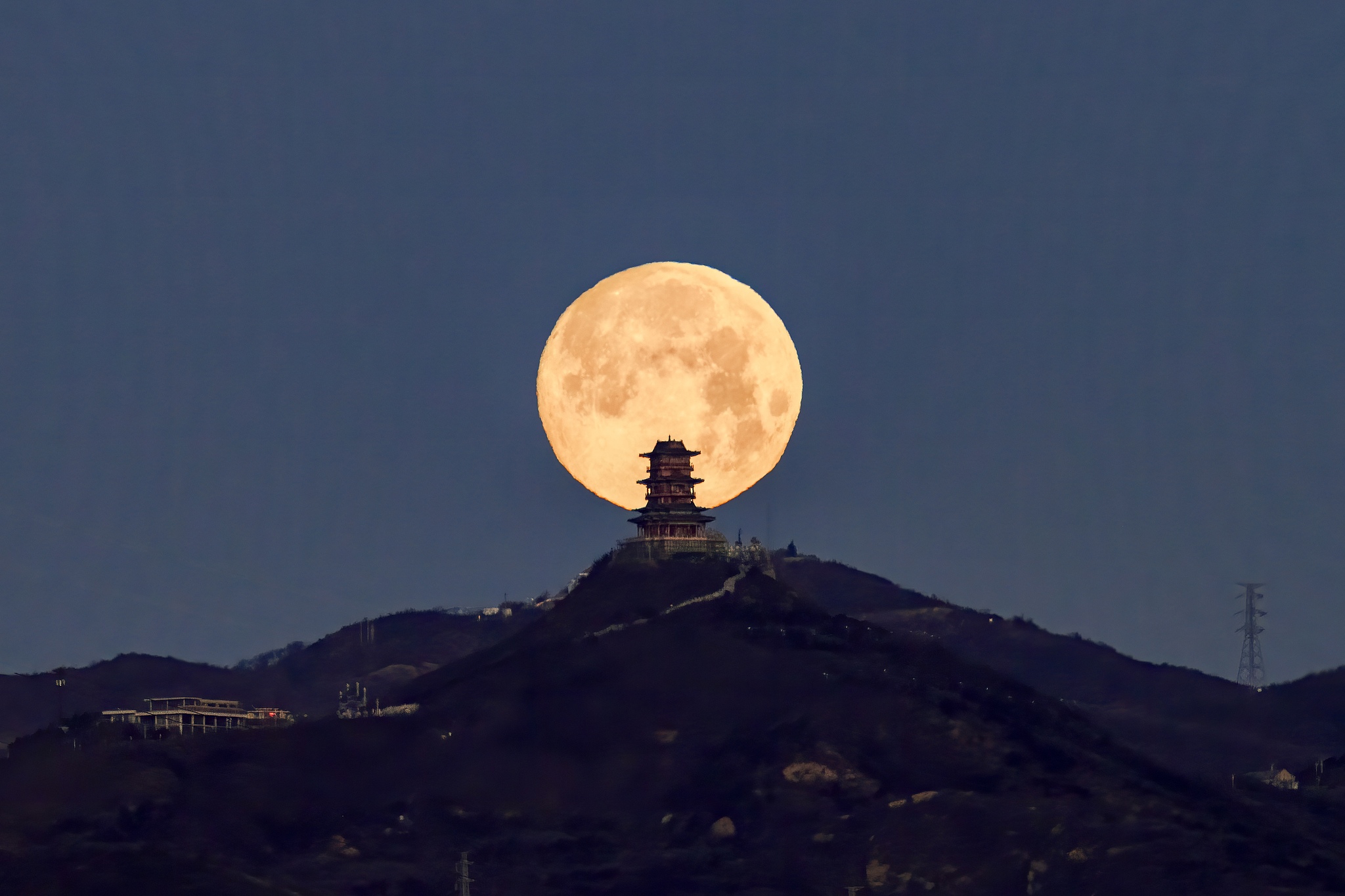 Dingdu Pavilion with the moon, February 12, 2025. /VCG