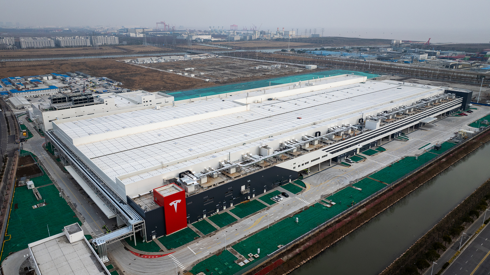 An aerial image of Tesla's Megafactory in Shanghai, February 16, 2025. /CFP