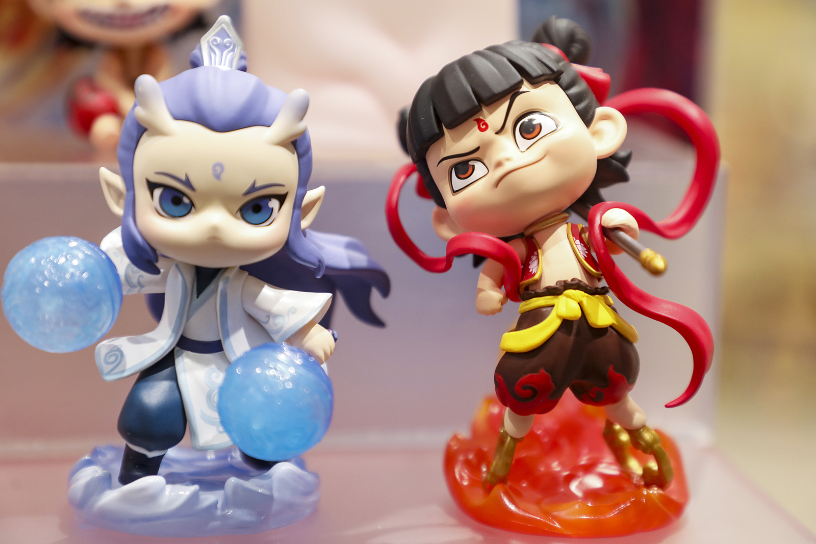 Blind-box figurines of the characters from the Chinese animated blockbuster "Ne Zha 2" are seen on display at a store in Shanghai on February 26, 2025. /VCG