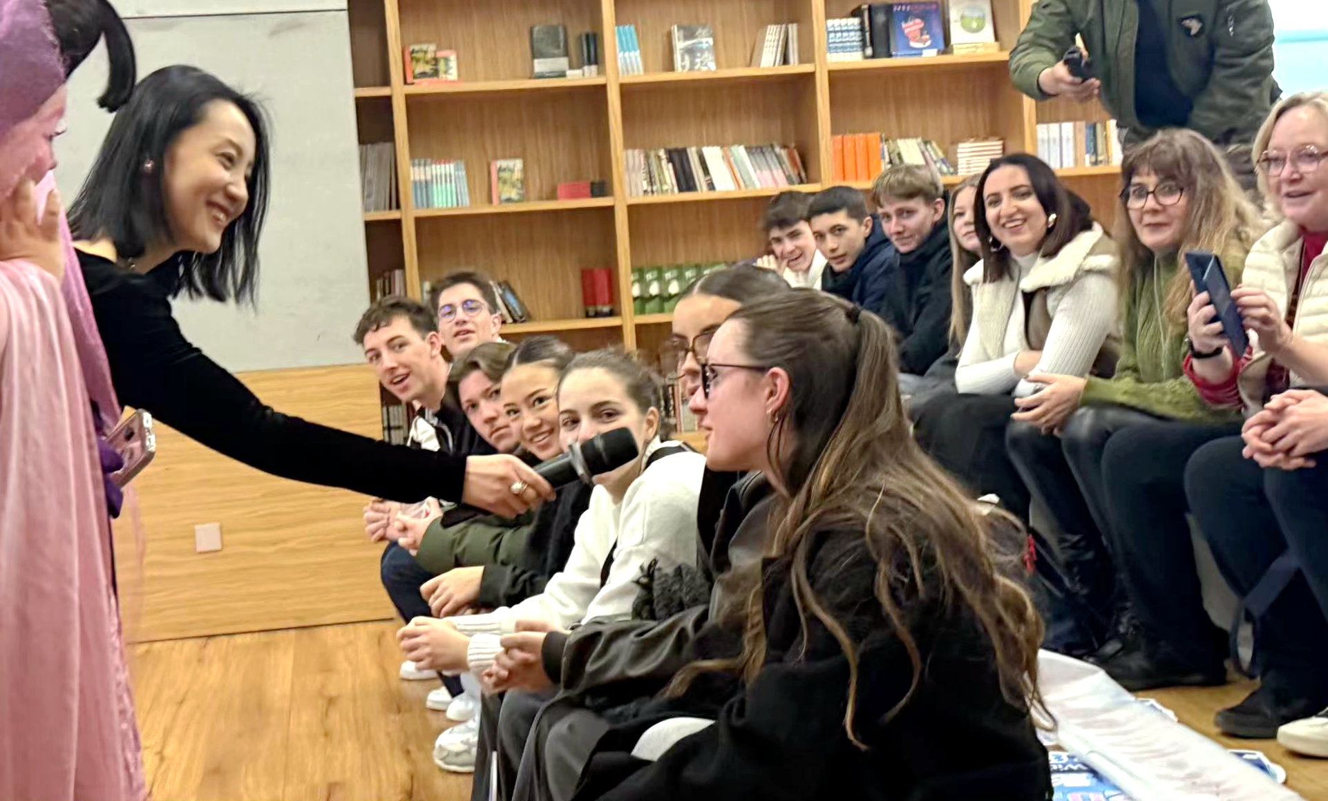 About 30 overseas young people, including a visiting French student cultural exchange group and international students studying in Xi'an, participate in the cultural exchange event "China Travel With Chinese Films @Xi'an" in Xi'an, Shaanxi Province, February 27, 2025. /Photo by Li Mingyue
