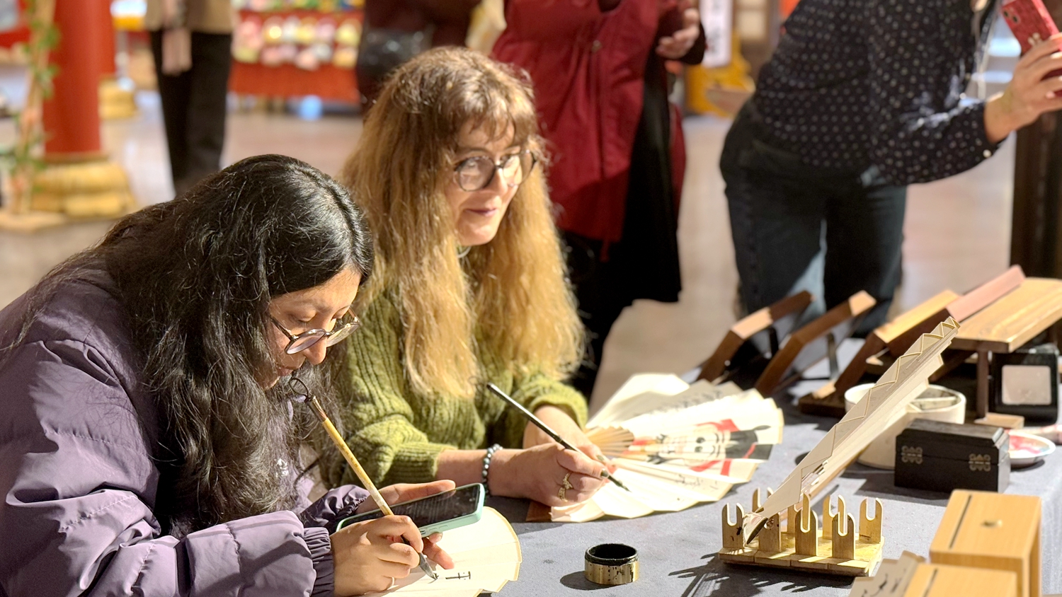 Overseas participants experience the interactive intangible cultural heritage activities in Xi'an, Shaanxi Province, February 27, 2025. /Photo by Li Mingyue