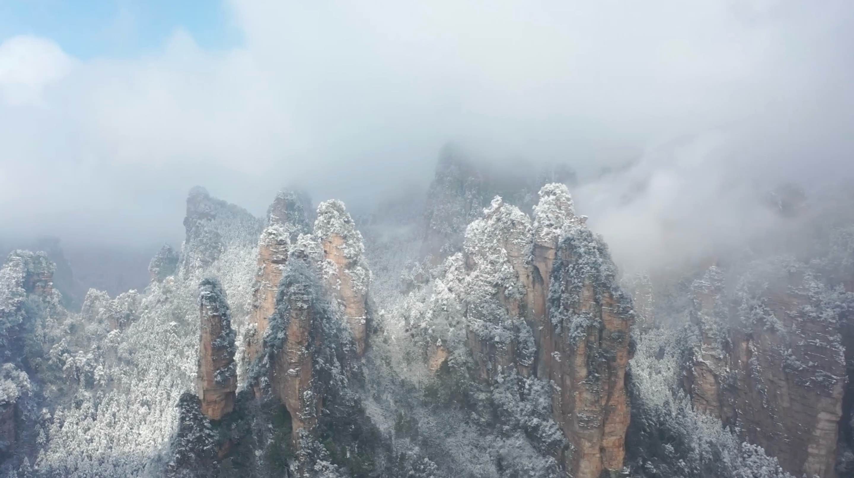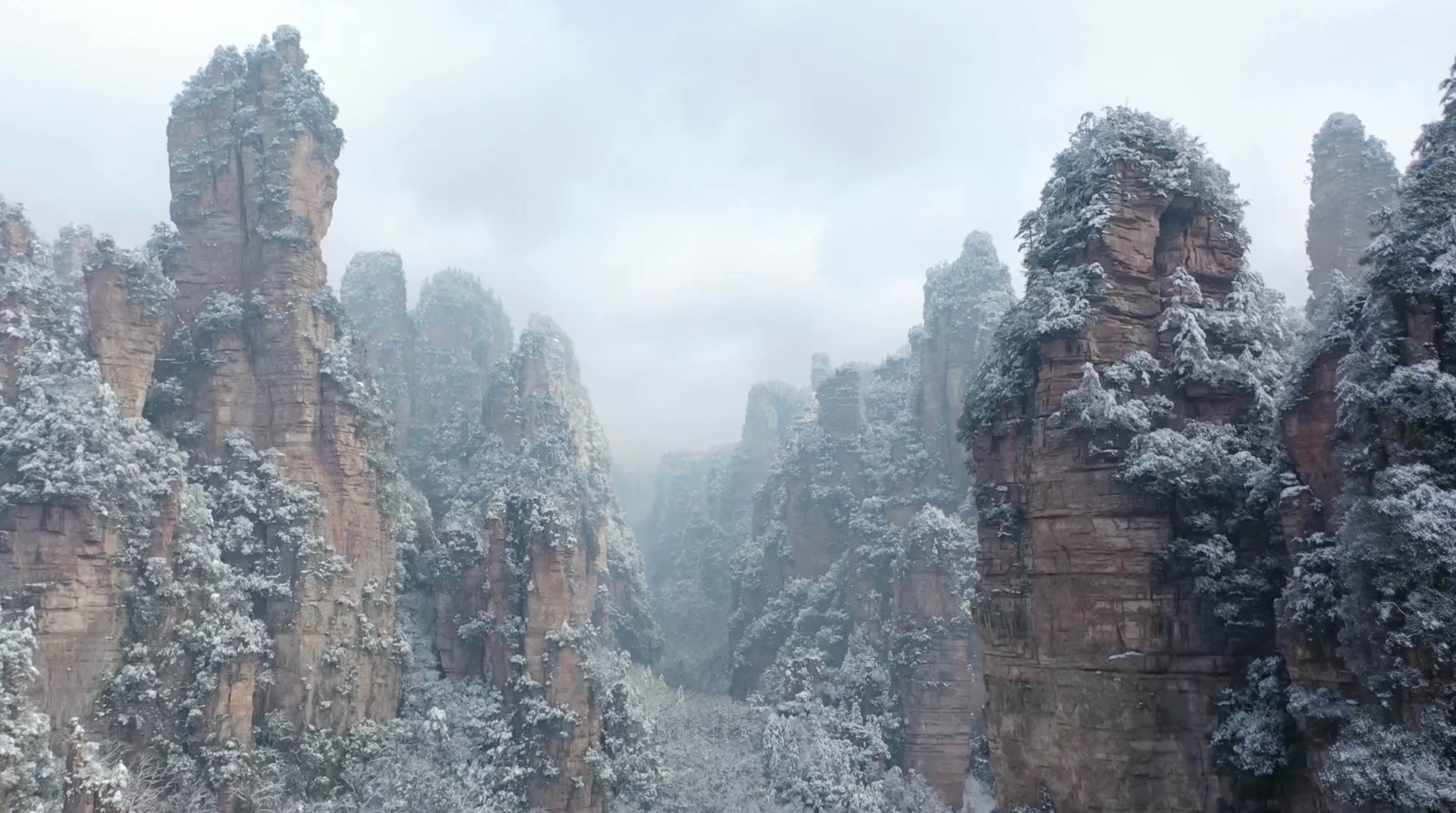 Zhangjiajie National Forest Park in snow and mist in central China's Hunan Province. /CMG
