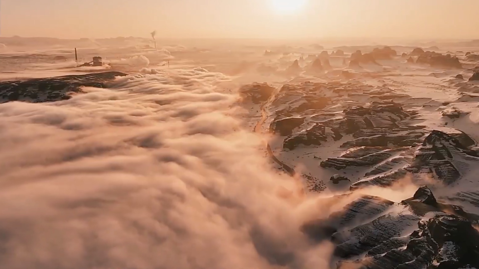 Photography enthusiasts have immortalized a breathtaking natural phenomenon in Xinjiang's Karamay, the world's "Devil City." As the morning sun covers wind-carved rocks with shimmering gold waves, the ancient stone towers put on a show with a river of rushing clouds. Geologists explain that daily temperatures shift with sunlight's colorful effects, creating this amazing natural artwork.