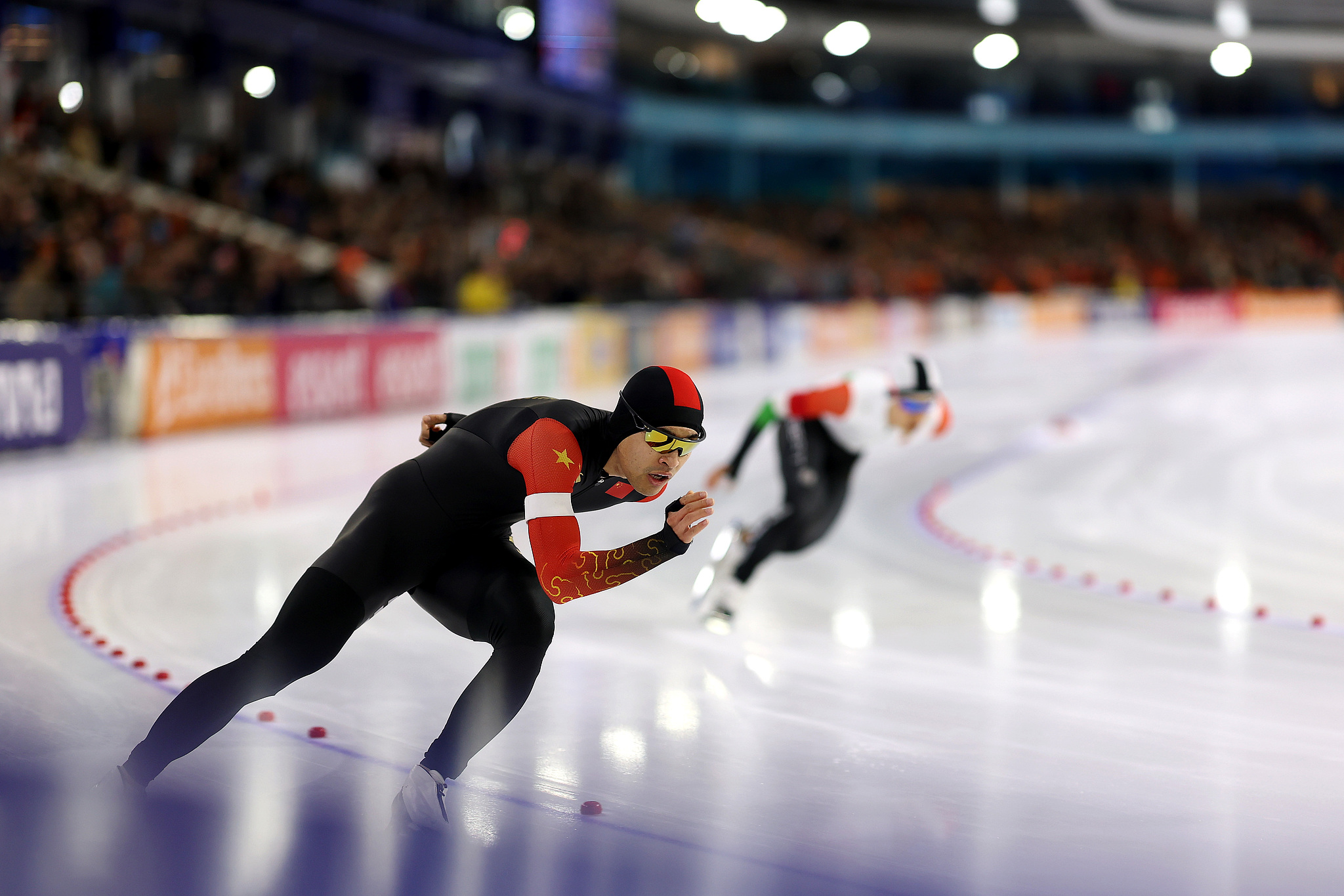 Ning Zhongyan of China competes in the men's 1500m race during the ISU World Speed Skating Championships at Thialf Ice Rink in Heerenveen, Netherlands, February 28, 2025. /VCG