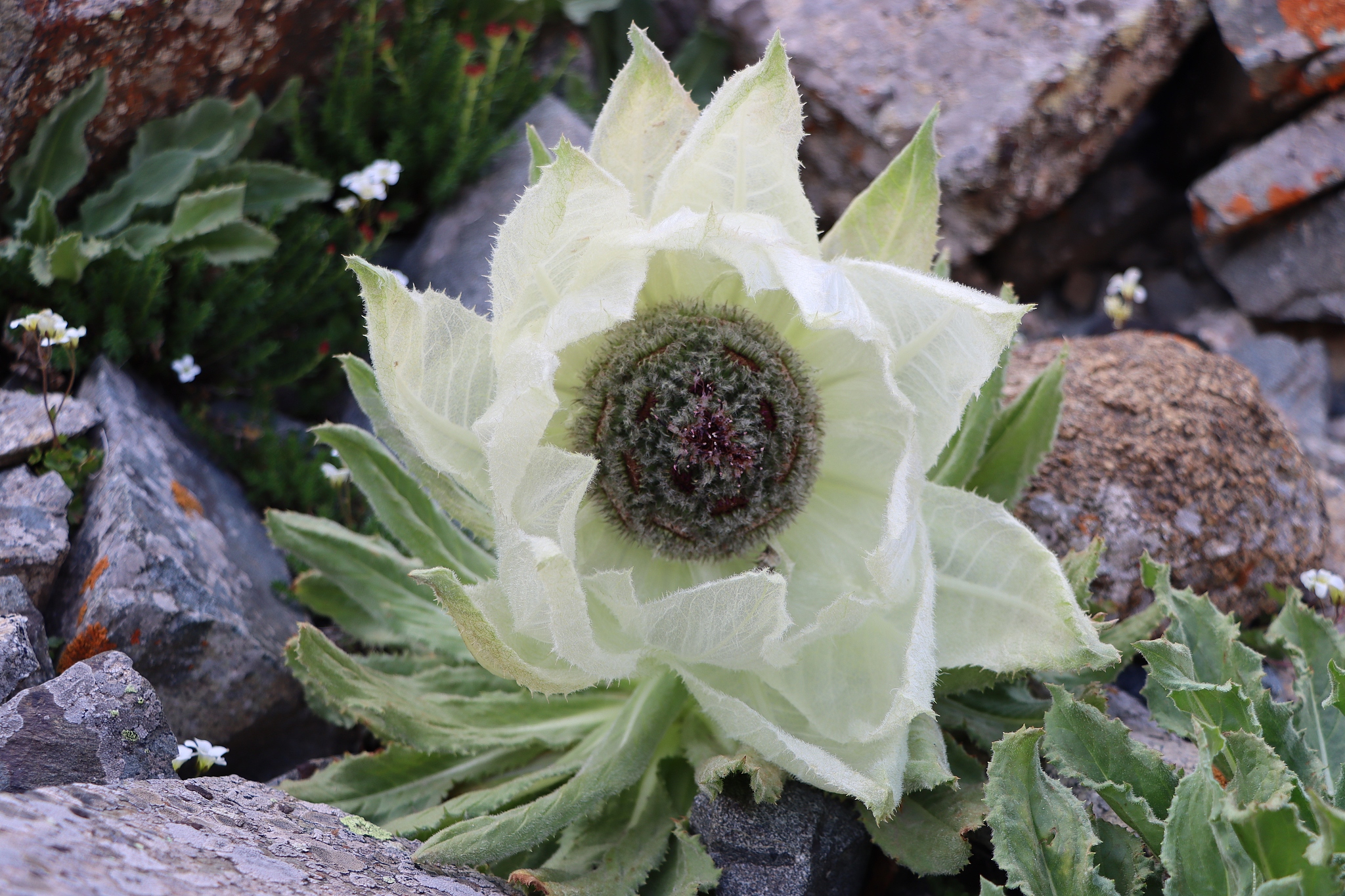 A Saussurea blossoms in Hami City, Xinjiang Uygur Autonomous Region, northwest China, June 30, 2024. /VCG