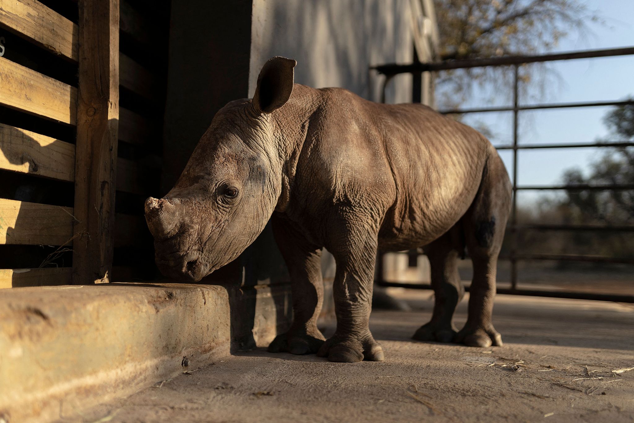 A rhino calf called Benjamin is seen at the Rhino Orphanage in Limpopo province, South Africa, July 14, 2022. /VCG