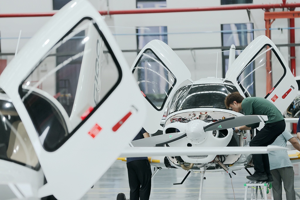 Workers assemble an aircraft at a workshop in Huzhou, east China's Zhejiang Province, June 11, 2024. /VCG