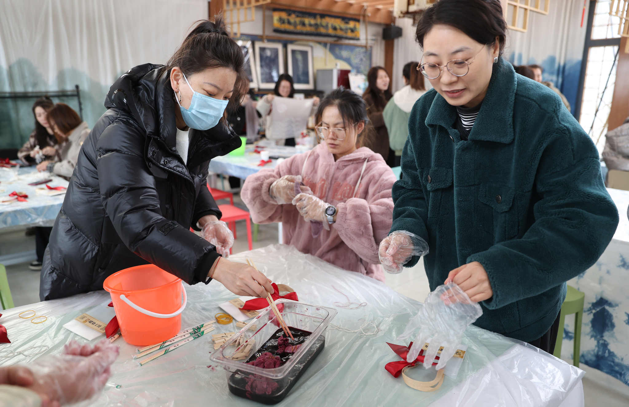 To mark International Women's Day, an intangible cultural heritage workshop in Yinchuan, northwest China's Ningxia Hui Autonomous Region has hosted a special tie-dyeing event. Nearly 50 female employees from the local wine industry gathered to immerse themselves in the beauty of traditional craftsmanship and experience an innovative fusion of wine and tie-dye art.