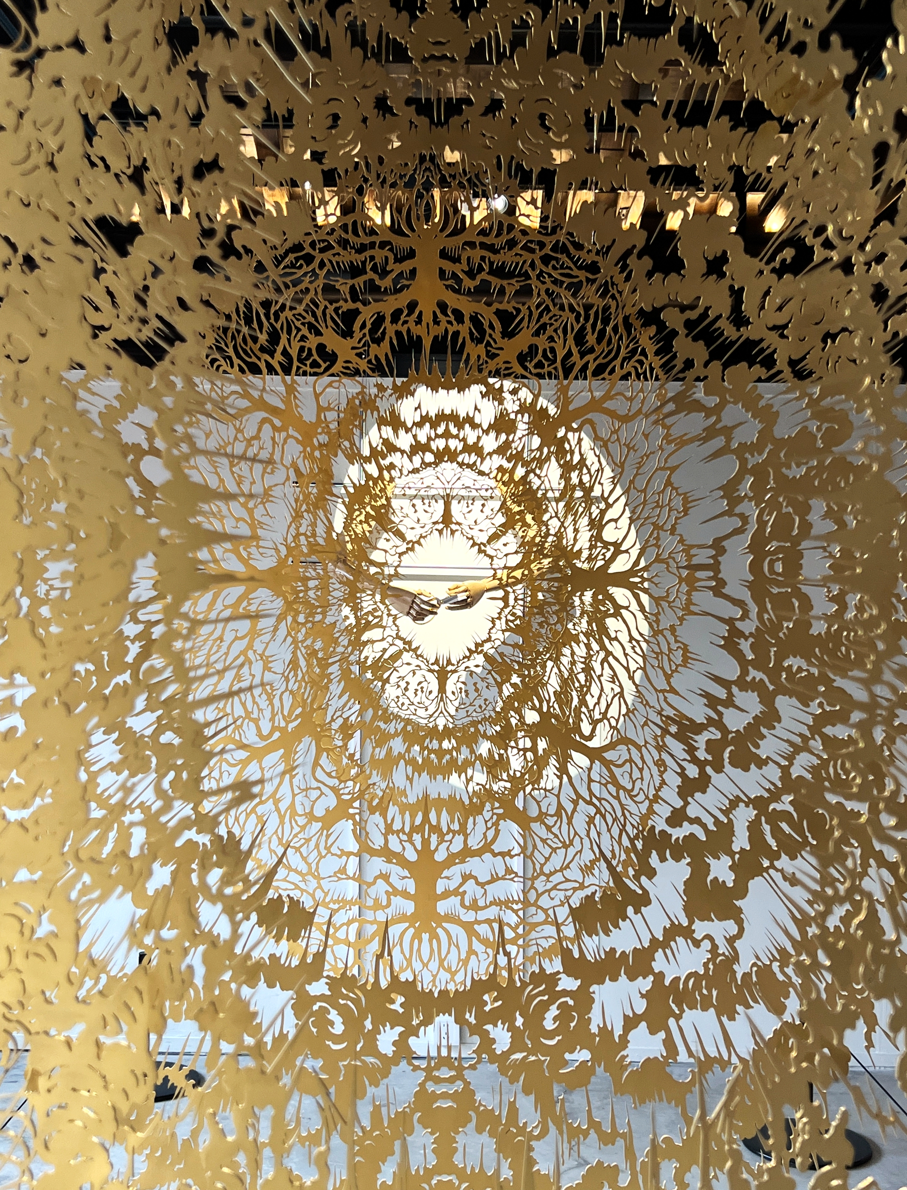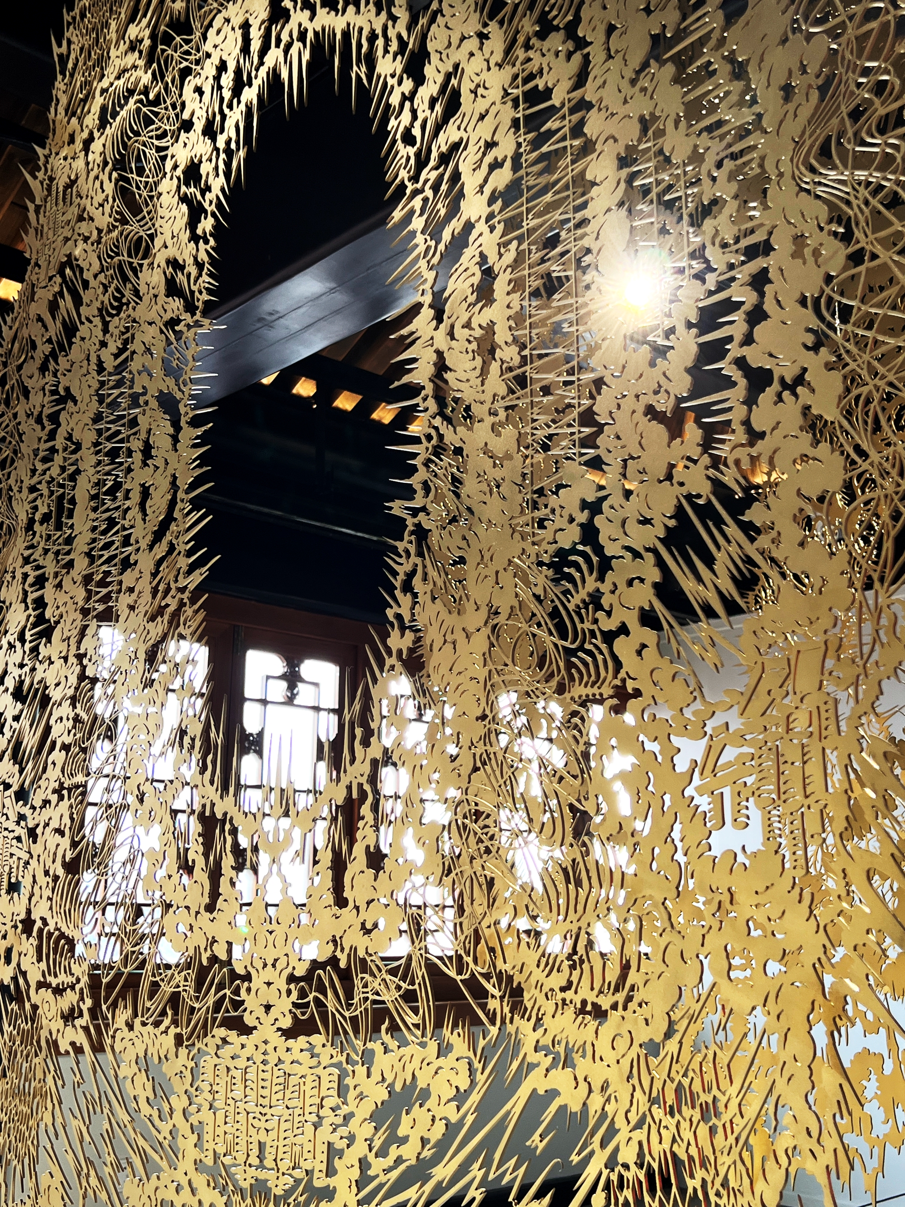 According to its creator Tang Zhengwei, he aims to distill and restore the purest language of paper-cutting art through the simple motion of paper strips being cut and falling. Tang explained that the front part of the art installation presents the visual imagery of the conceptual process, divided into five layers, progressing step by step. The paper strips diffuse in a wave-like pattern, transforming into a form filled with energy. And in the last part, these elements converge and integrate, conveying the profound meaning and tension inherent in paper-cutting art.