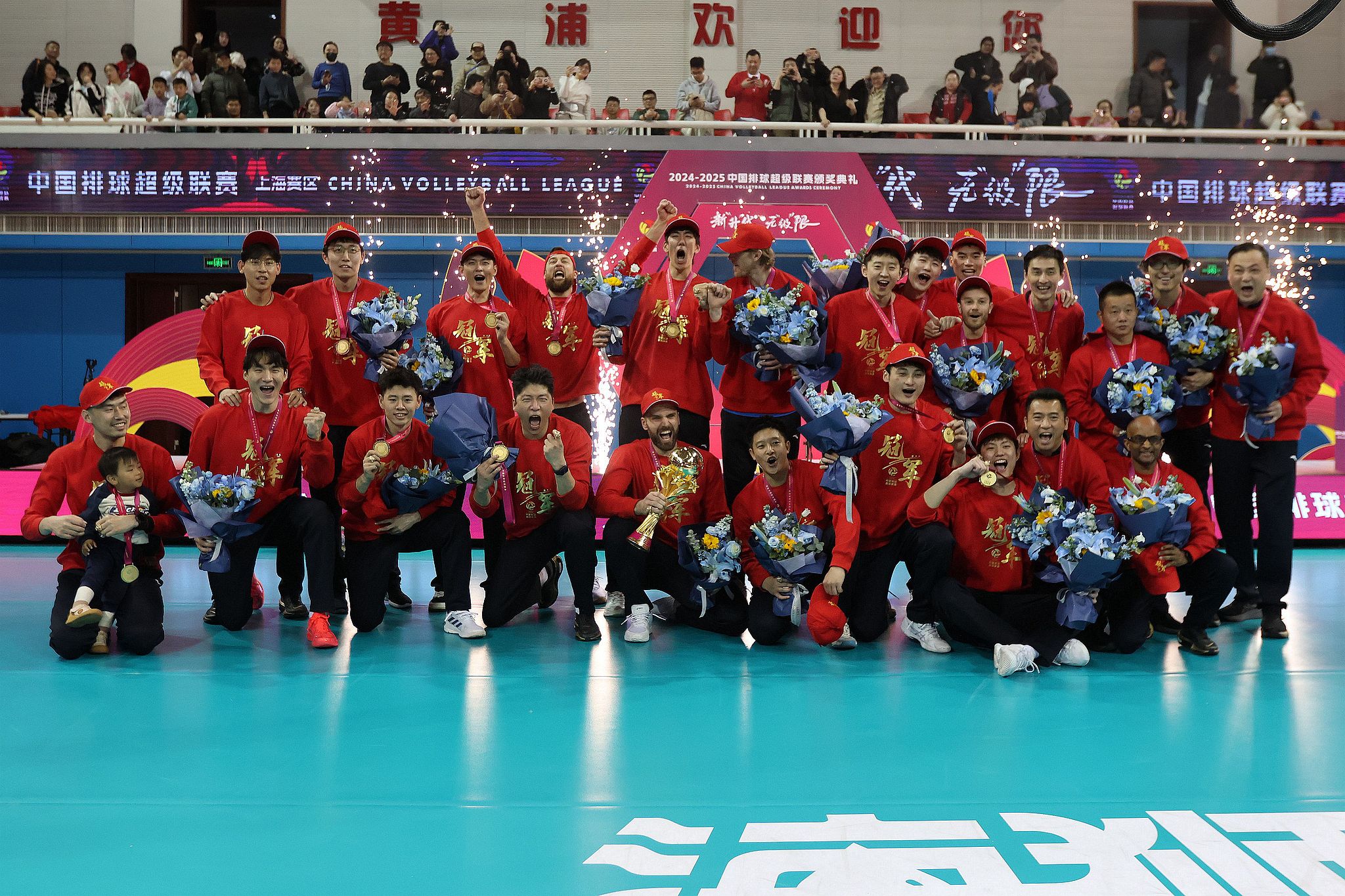 Players of Shanghai celebrate winning the China Men's Volleyball Super League Finals in east China's Shanghai Municipality, March 9, 2025. /vcg