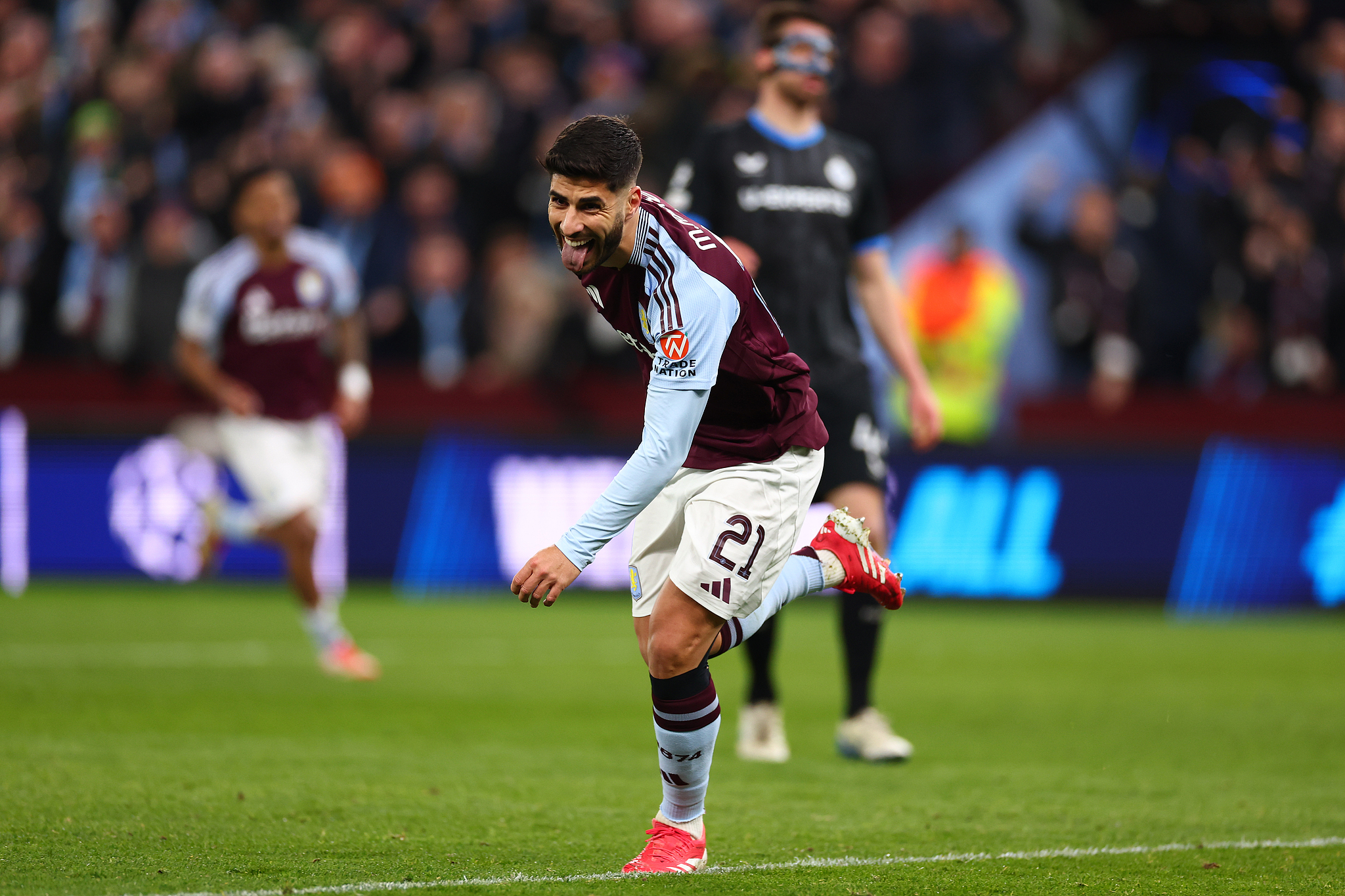 Marco Asensio of Aston Villa celebrates after scoring a goal against Brugge in a UEFA Champions League round of 16 second leg match at Villa Park in Birmingham, England, March 12, 2025. /VCG