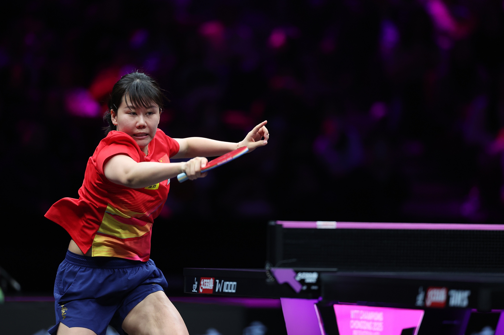 China's Chen Xingtong in action during the WTT Champions event in Chongqing, China, March 14, 2025. /VCG