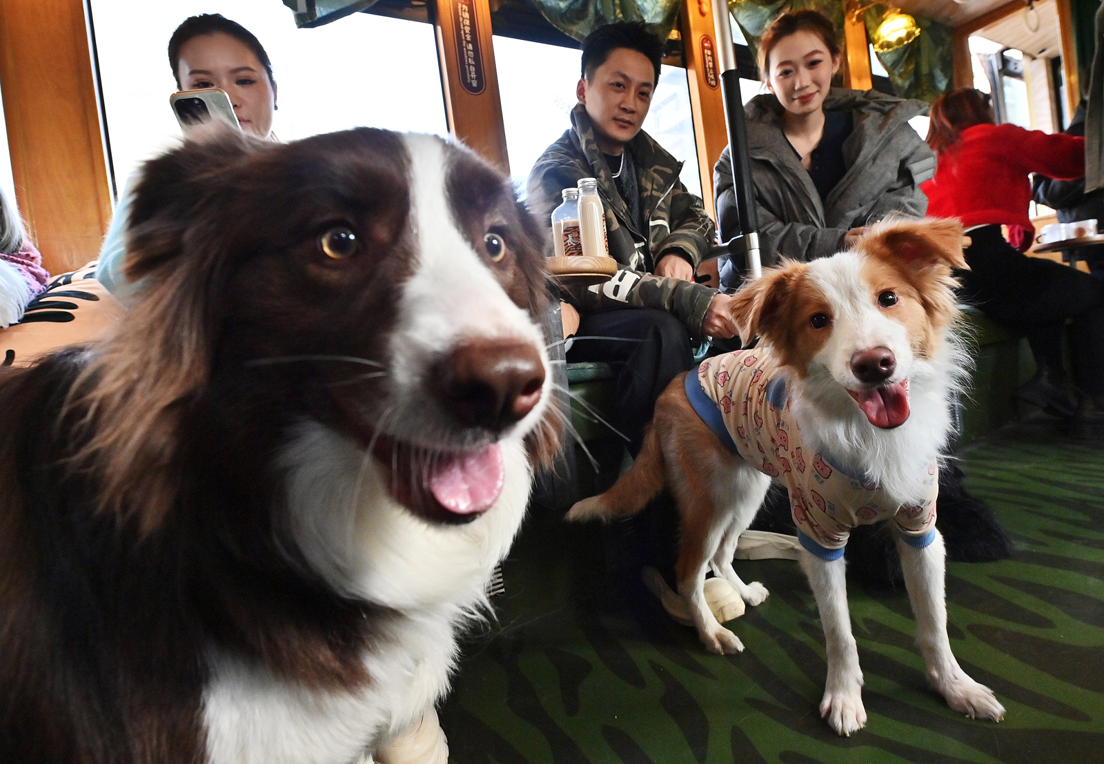 Pets enjoy a special ride with their owners aboard the Route 54 Cultural Tourism Northeast Tiger Special Tram in Changchun, Jilin Province on March 16, 2025. /VCG