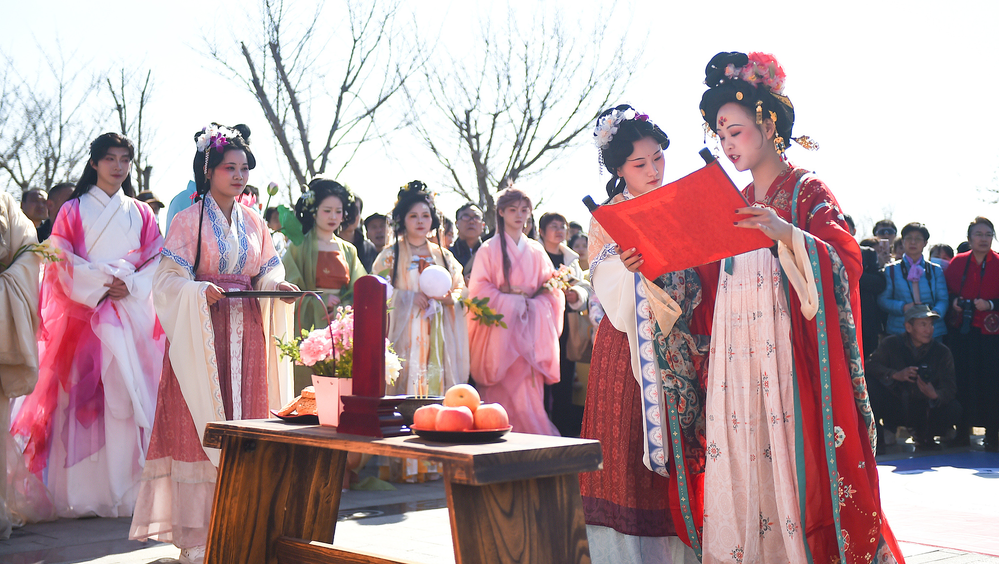 Girls dressed in Hanfu partake in spring activities in Luoyang, Henan Province, China, March 16, 2025. /VCG
