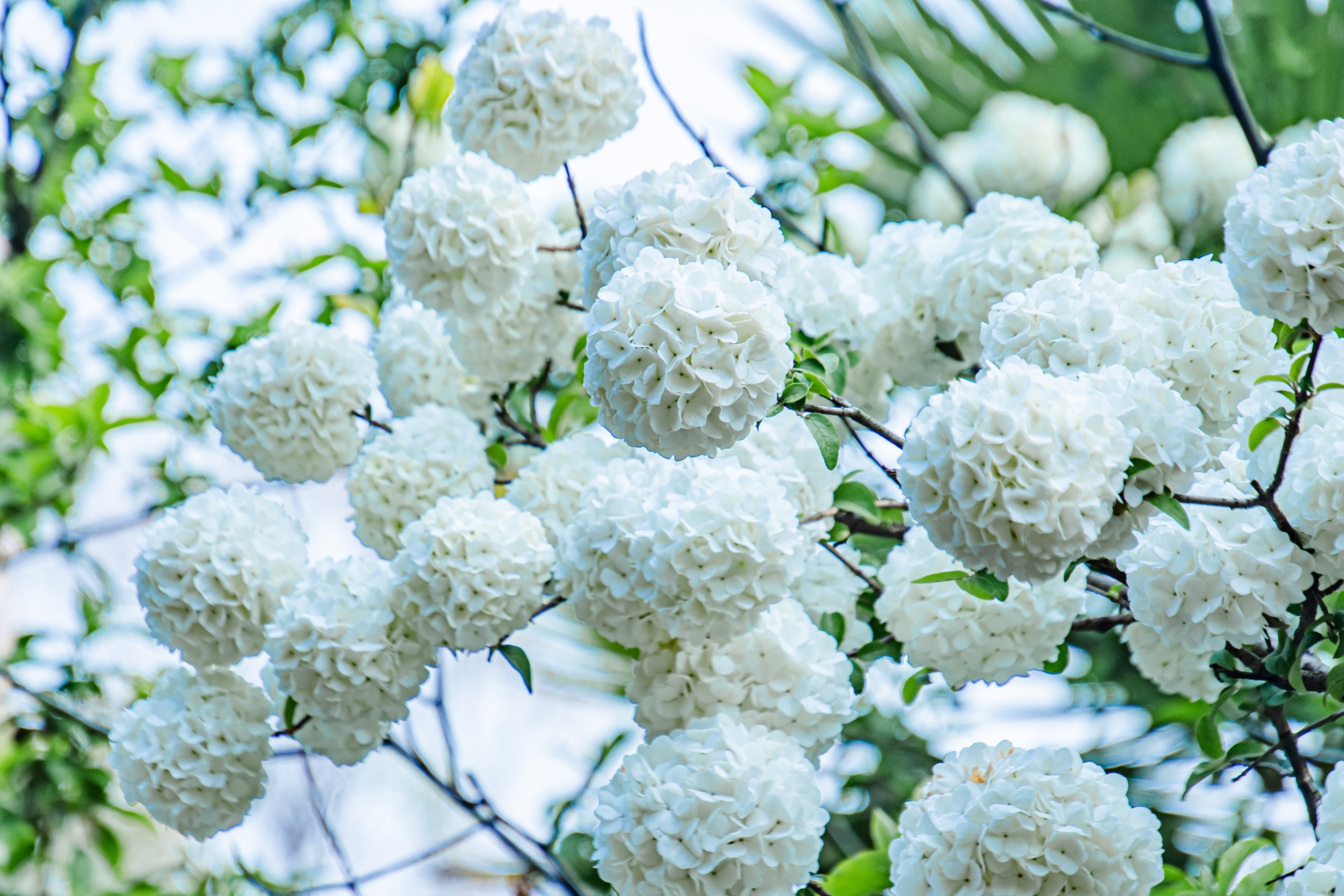 Blossoming Chinese snowballs are pictured at Yangmeidu Park in Ganzhou, Jiangxi Province on March 23, 2025. /IC