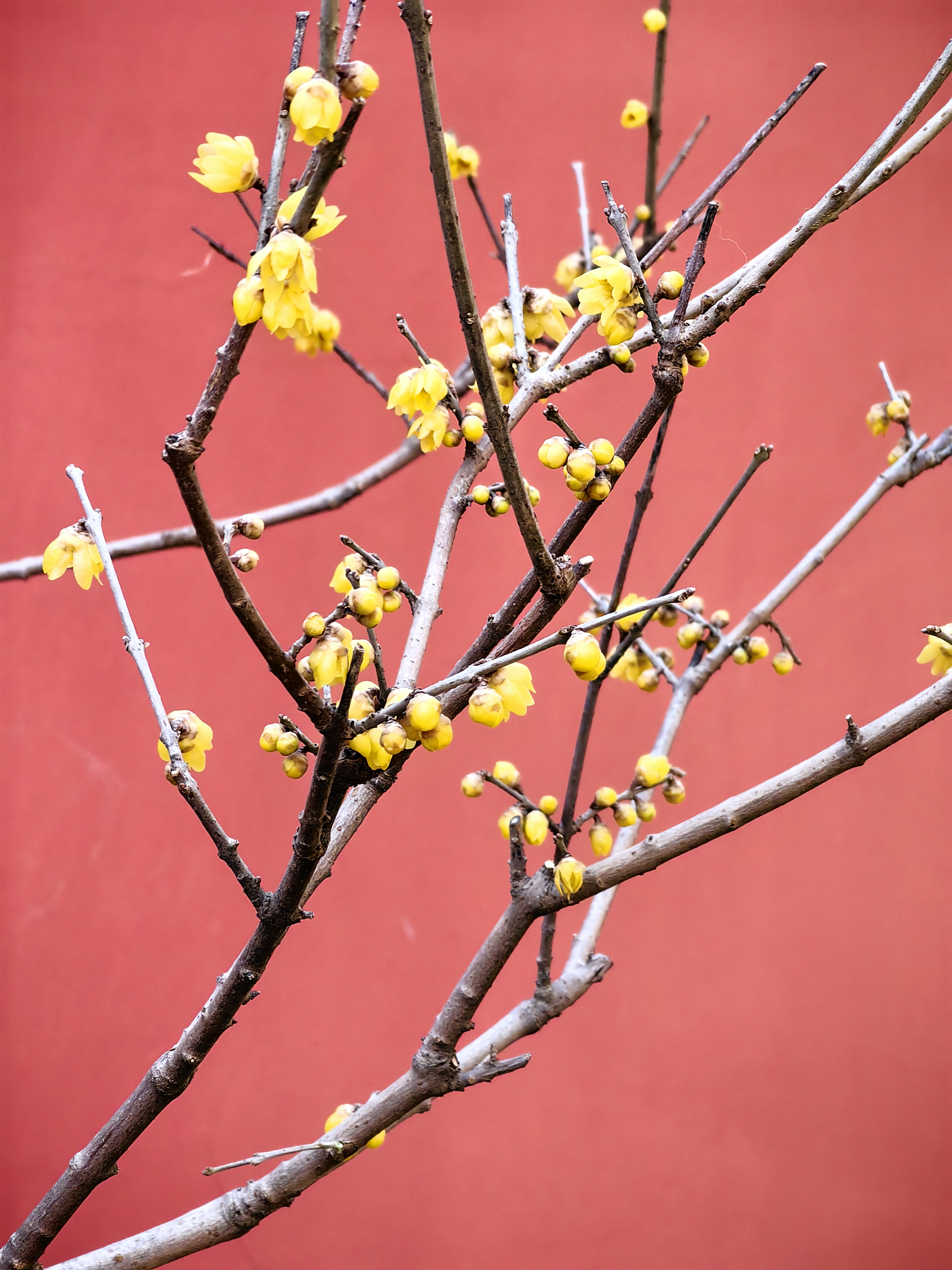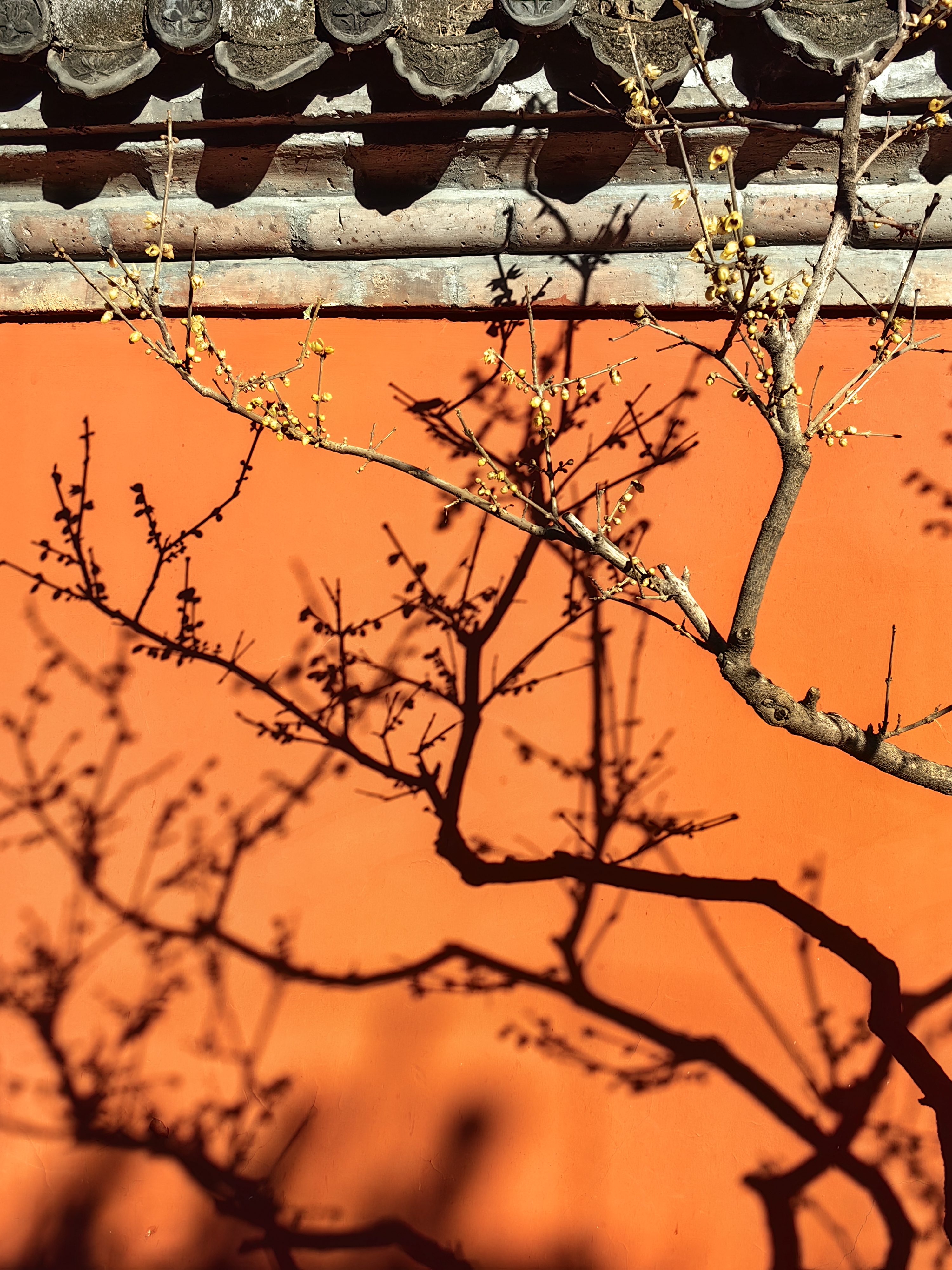 A photo series infused with delicate fragrance! Against the deep red walls of Beijing's Wofo Temple, also known as the Reclining Buddha Temple, golden wintersweet blossoms create a stunning scene. Their sweet scent lingers in the air, inviting visitors to immerse themselves in the temple's tranquil charm.