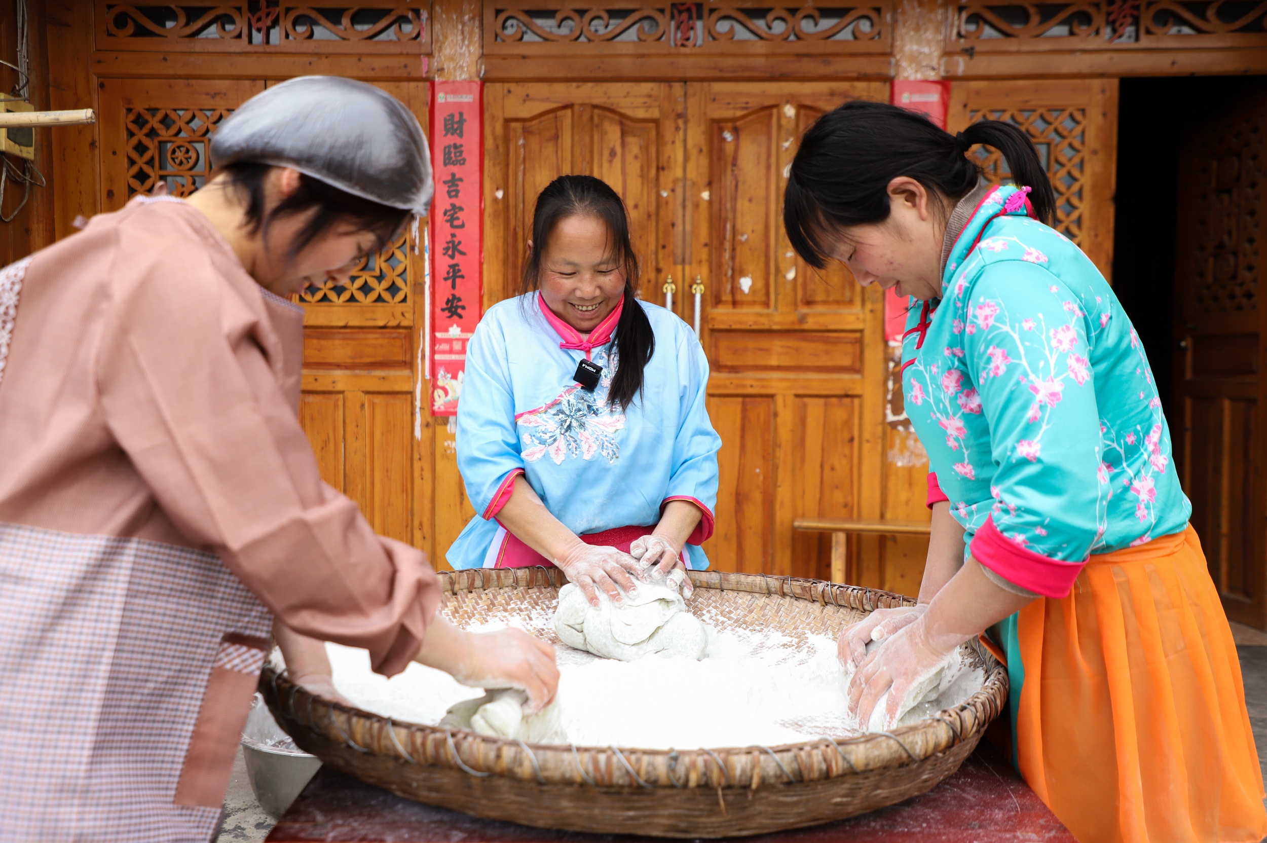 People knead dough to make Qingming Cake in Yinjiang Tujia and Miao Autonomous County, southwest China's Guizhou Province, on March 19, 2025. /Photo provided to CGTN
