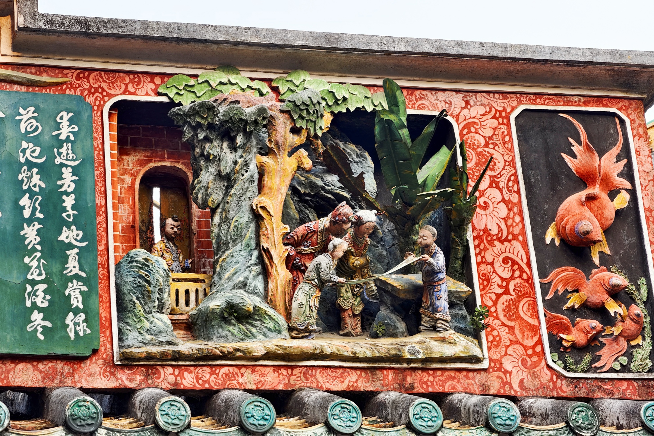These ceramic sculptures on the rooftops, rich in detail and vivid in imagery, are not only decorative elements but also a showcase of the remarkable traditional craftsmanship in the Lingnan region.