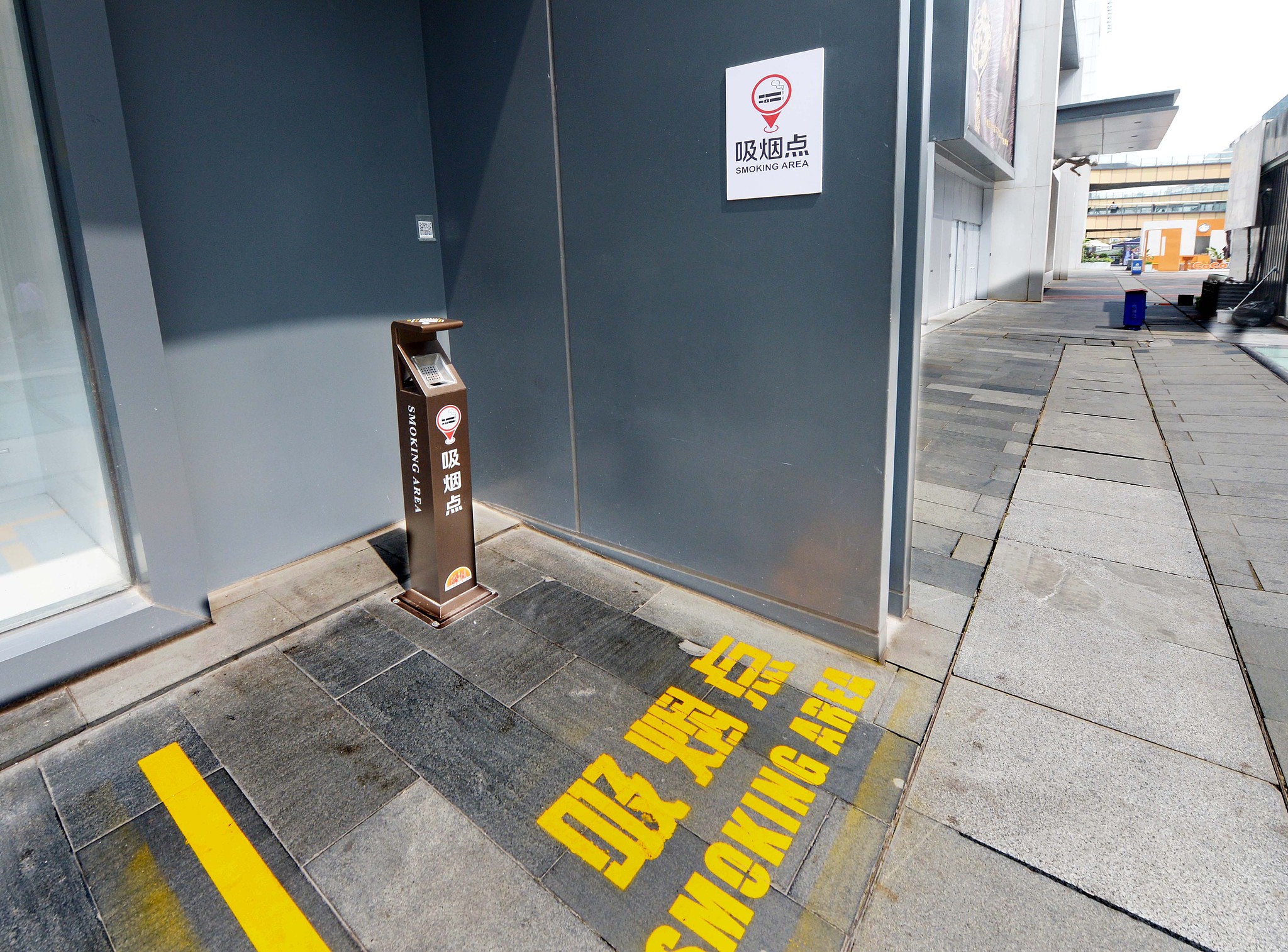 A smoking area in a commercial plaza in Shanghai, east China, May 31, 2023. /VCG