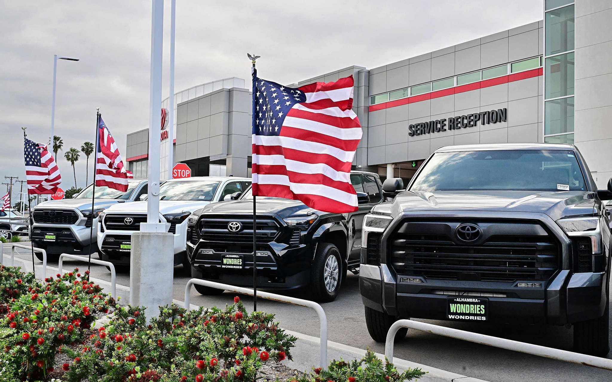 US flags outside a Toyota dealership in Alhambra, California, the United States, on March 27, 2025. /VCG