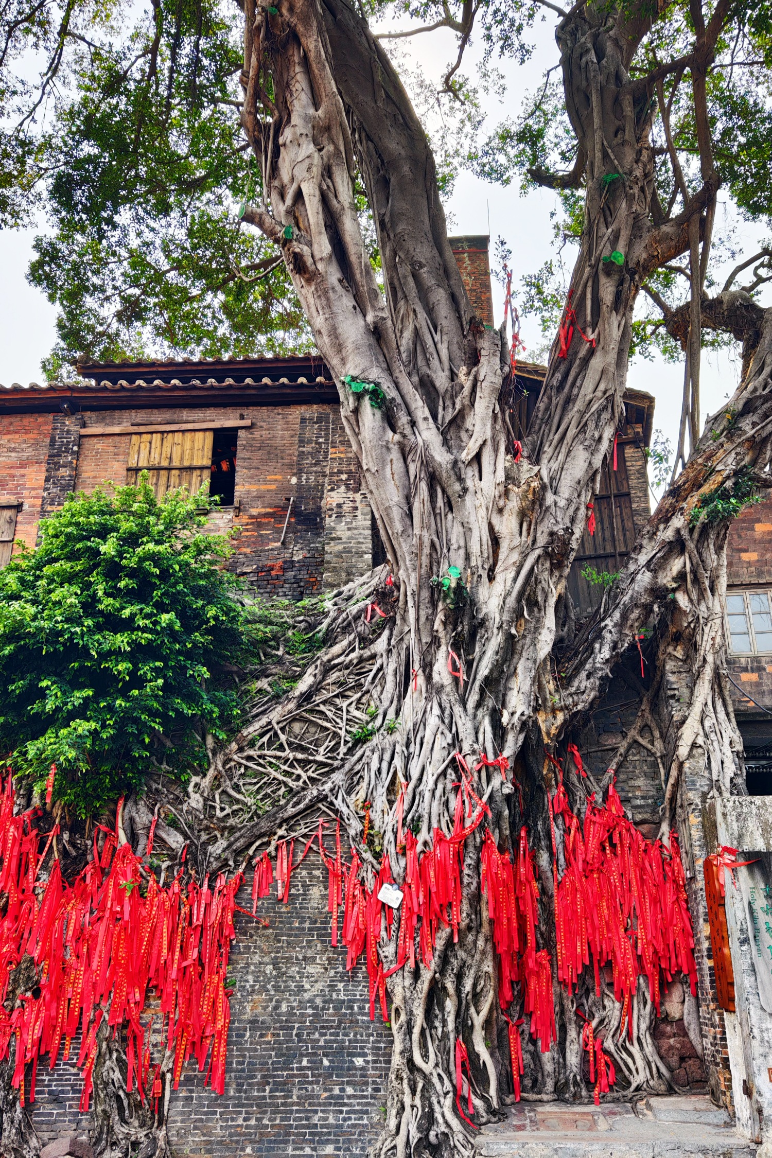 An ancient tree is seen at the Nanfeng Ancient Kiln in Shiwan, Foshan, Guangdong Province, March 24, 2025. /CGTN