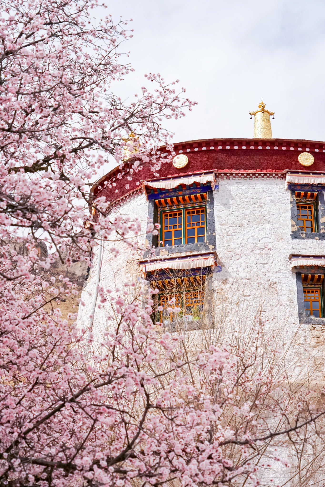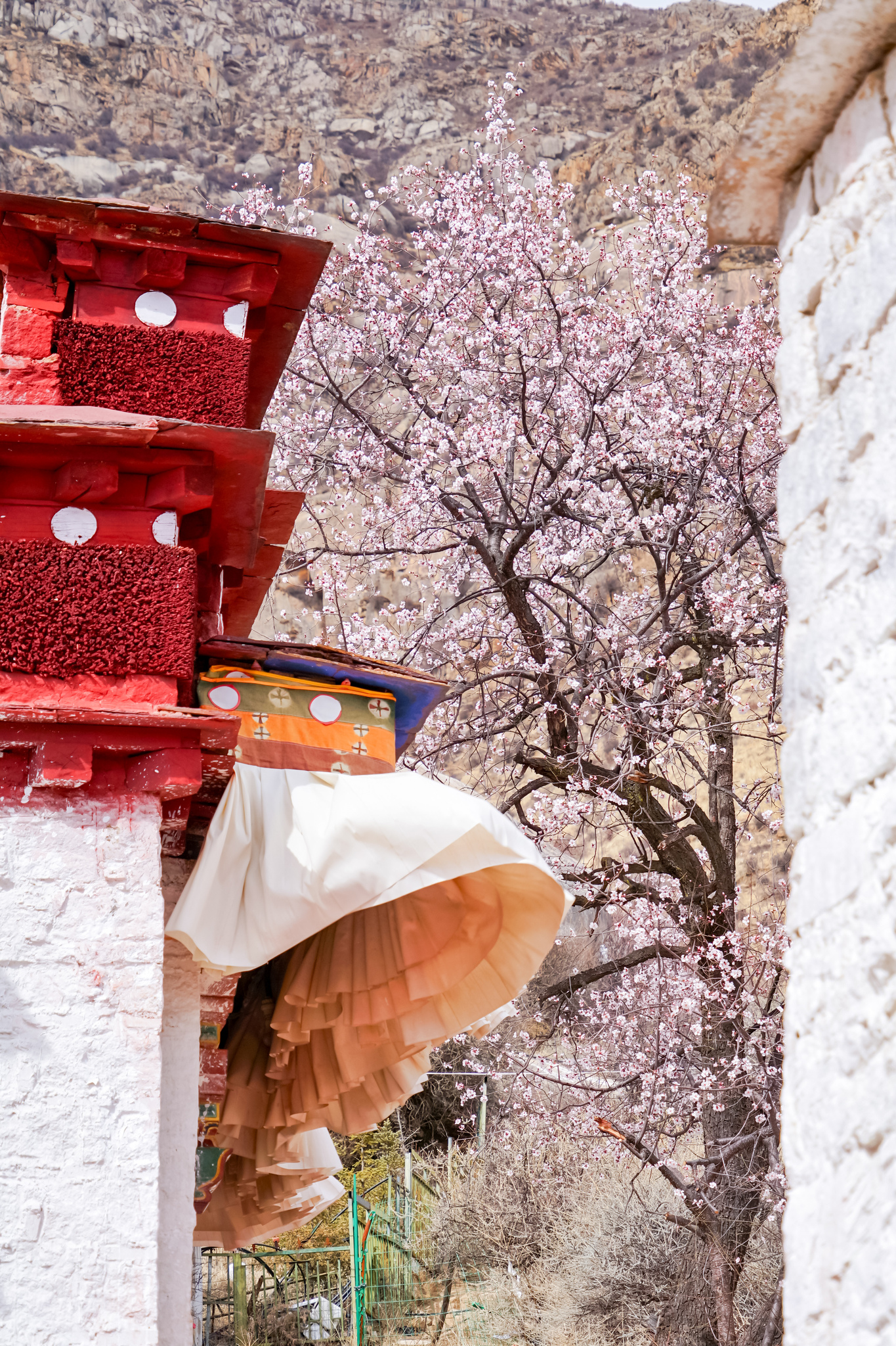 Peach blossoms are pictured at Pabongka Temple in Lhasa, Xizang Autonomous Region on March 30, 2025. /VCG