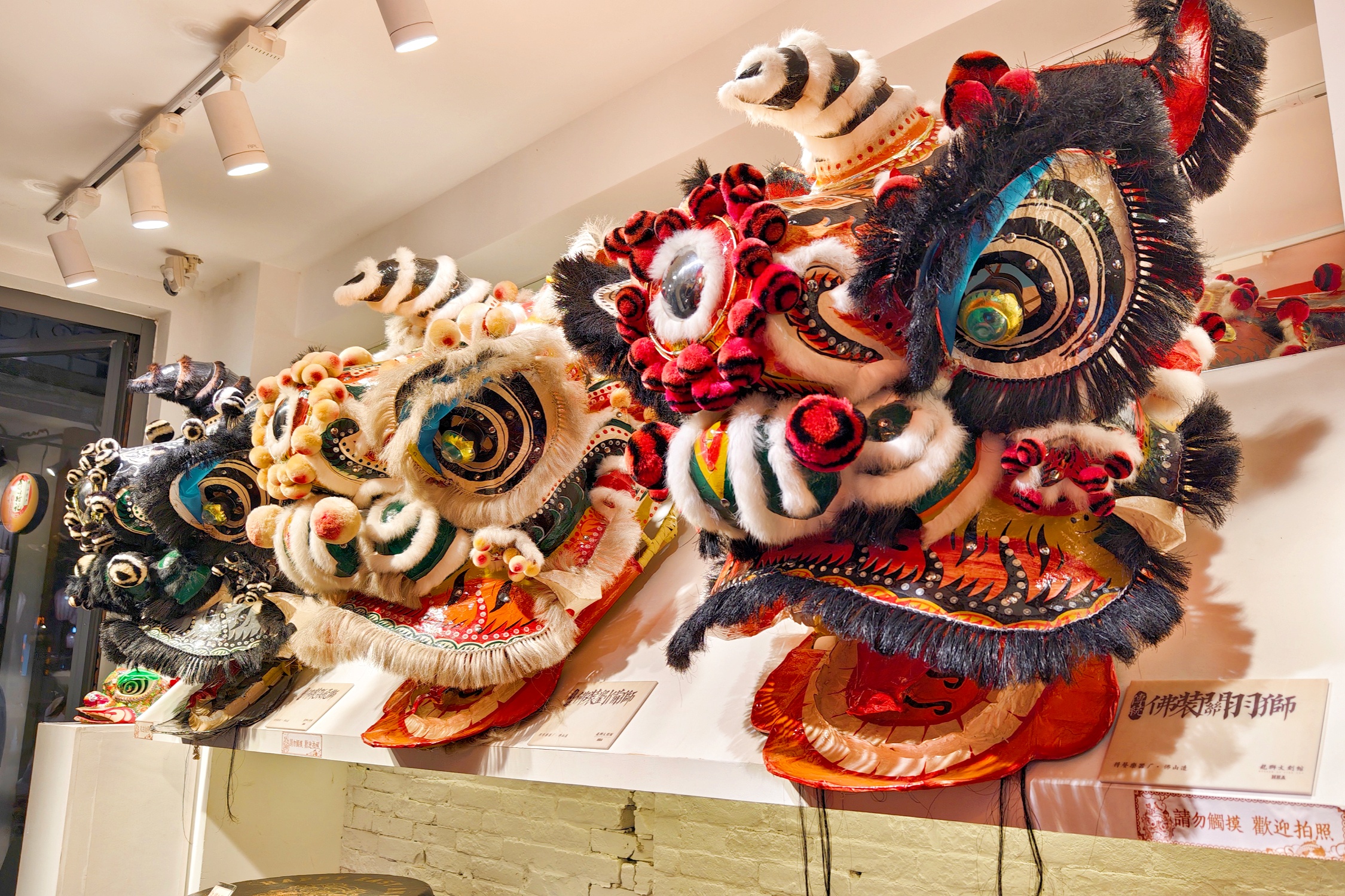 The color combinations of the lion heads are inspired by the facial makeup of Liu Bei and his five valiant generals in Cantonese Opera, which is based on the Chinese classic "The Three Kingdoms."