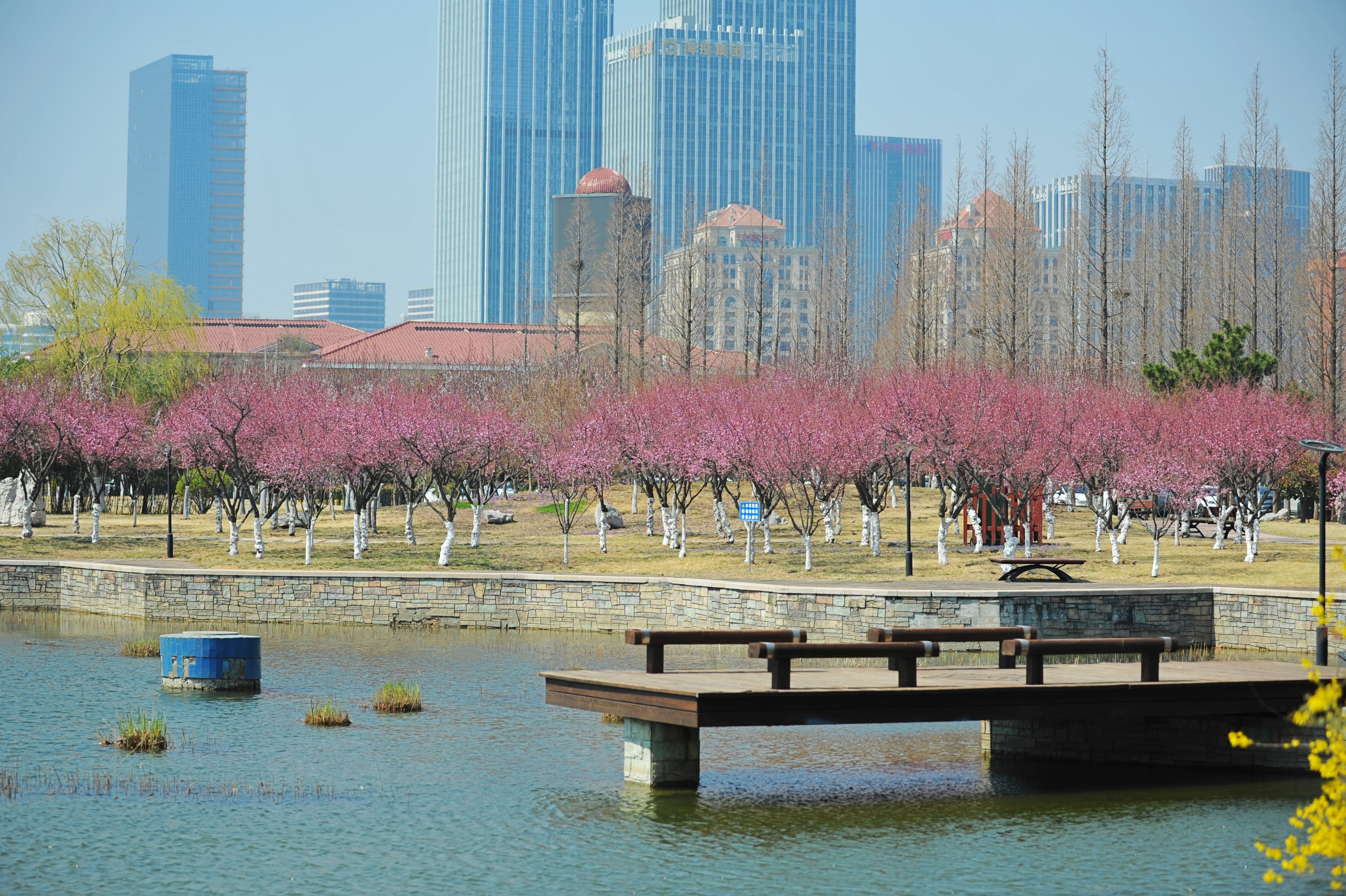 Surrounded by pink plum blossoms, visitors have soaked in the beautiful floral scenery and spring atmosphere at Tangdaowan Binhai Park in Qingdao, Shandong Province. Located on the seafront, the park takes advantage of its natural resources to offer visitors an eco-friendly green space, with wooden boardwalks, a variety of trees and plants, and a complete range of facilities.