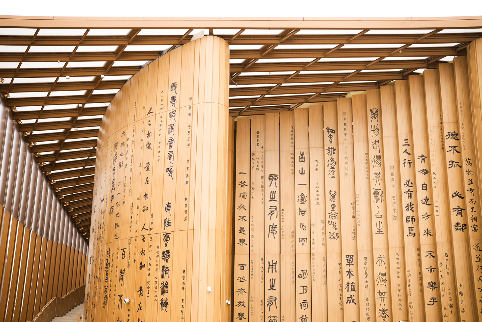 With the theme "Building a community of life for man and nature – a future society of green development," the pavilion resembles an unfurled Chinese calligraphy scroll, featuring bamboo slips engraved with lines of ancient Chinese poetry and passages from works of classical Chinese literature.