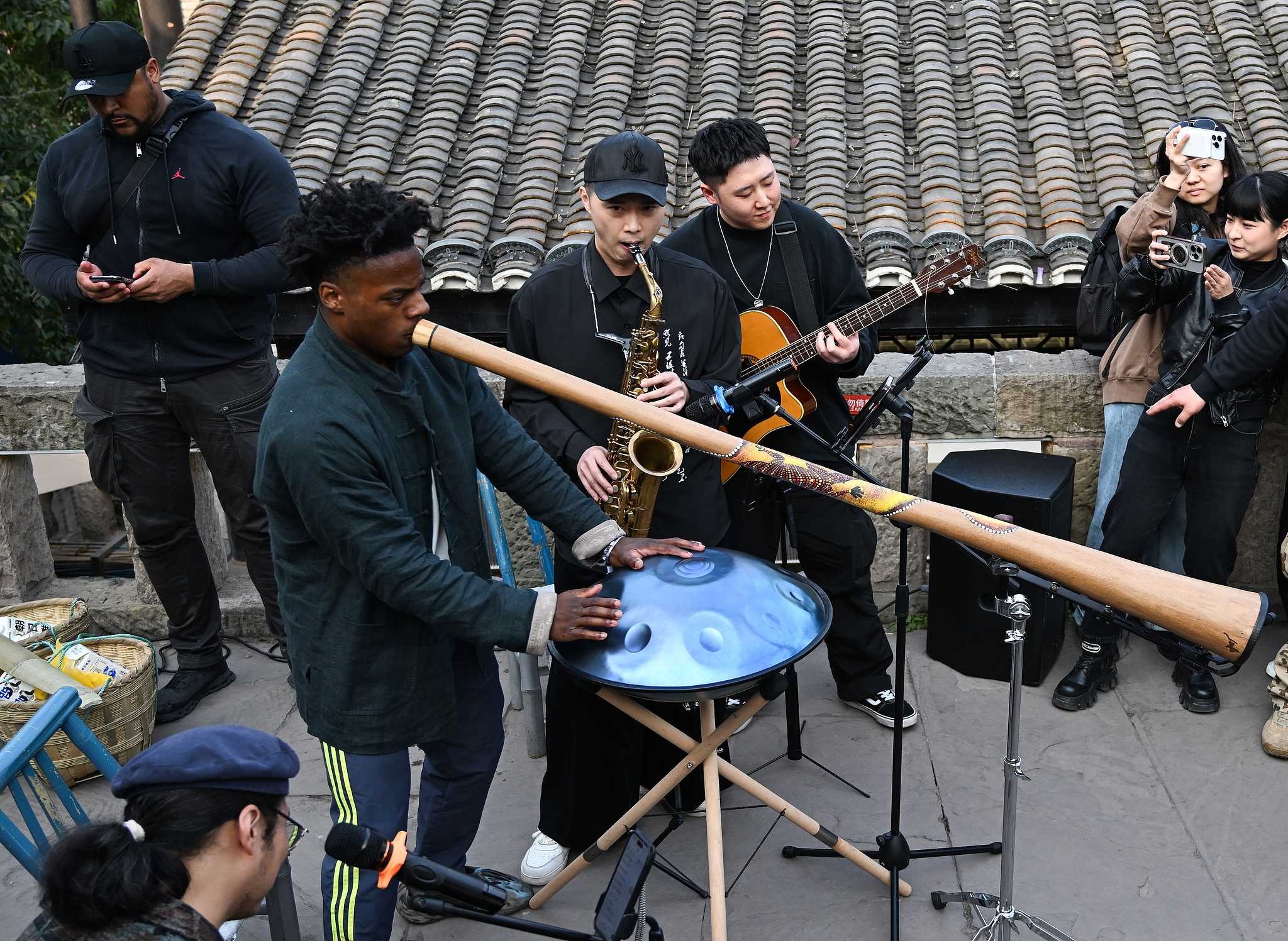 IShowSpeed joins a local band during his trip to Chongqing on April 2, 2025. /VCG