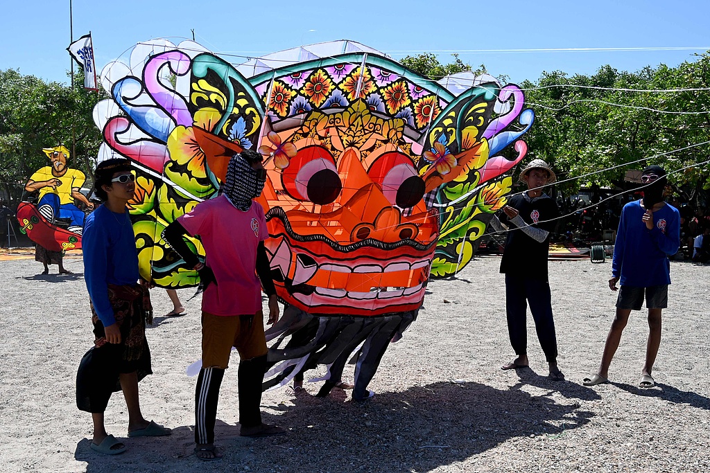 People prepare to fly a kite creation during the 79th Independence Day of Indonesia at the resort island of Bali on August 18, 2024. /VCG