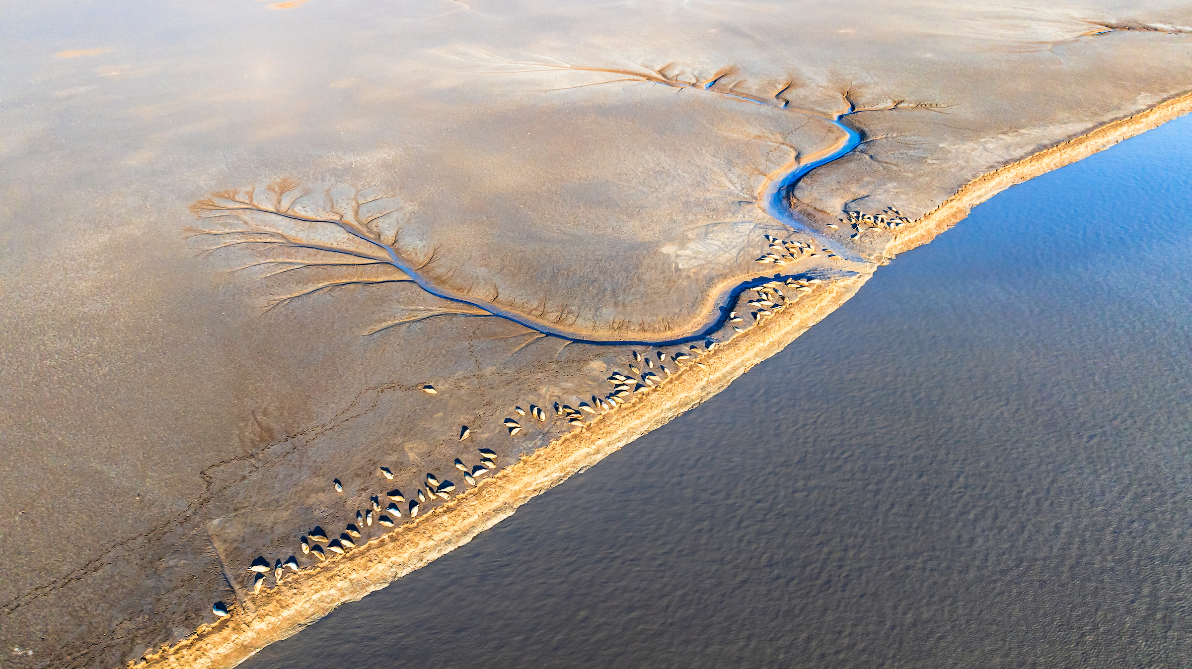 An aerial shot of over a hundred spotted seals at Liaohekou National Nature Reserve. /Guo Zhiling