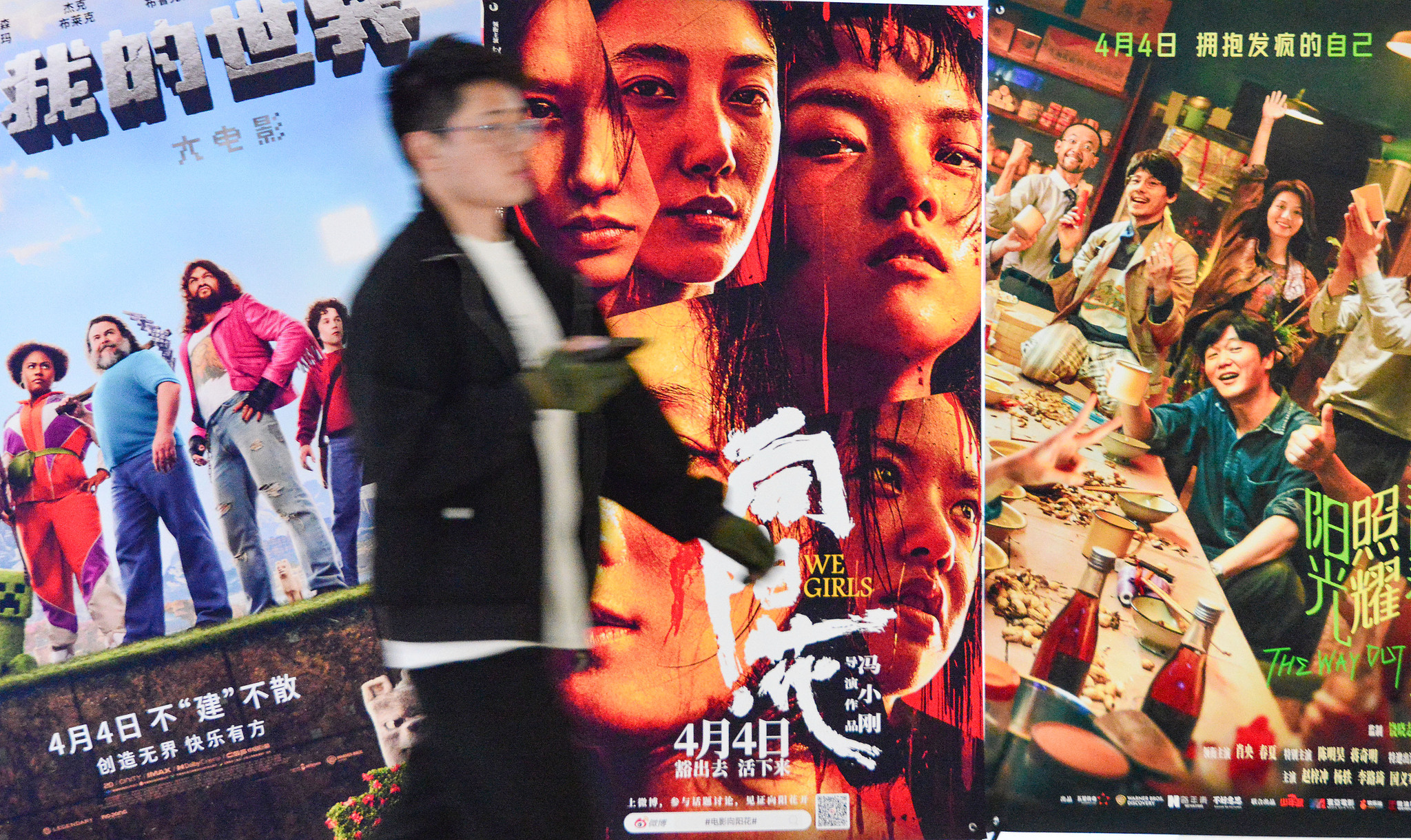 A man walks past movie posters at a cinema in Fuyang, Anhui Province, east China, April 4, 2025. /VCG