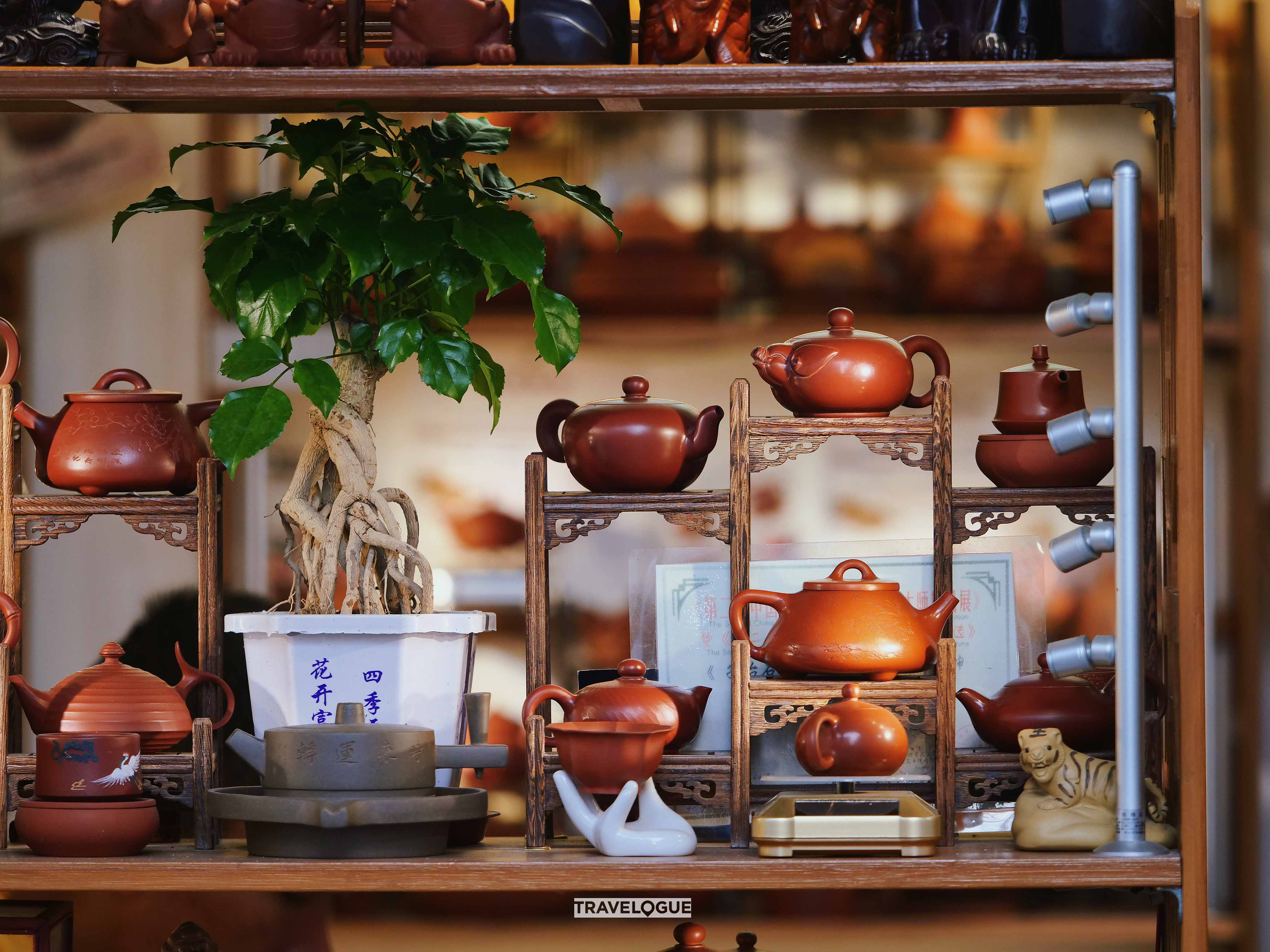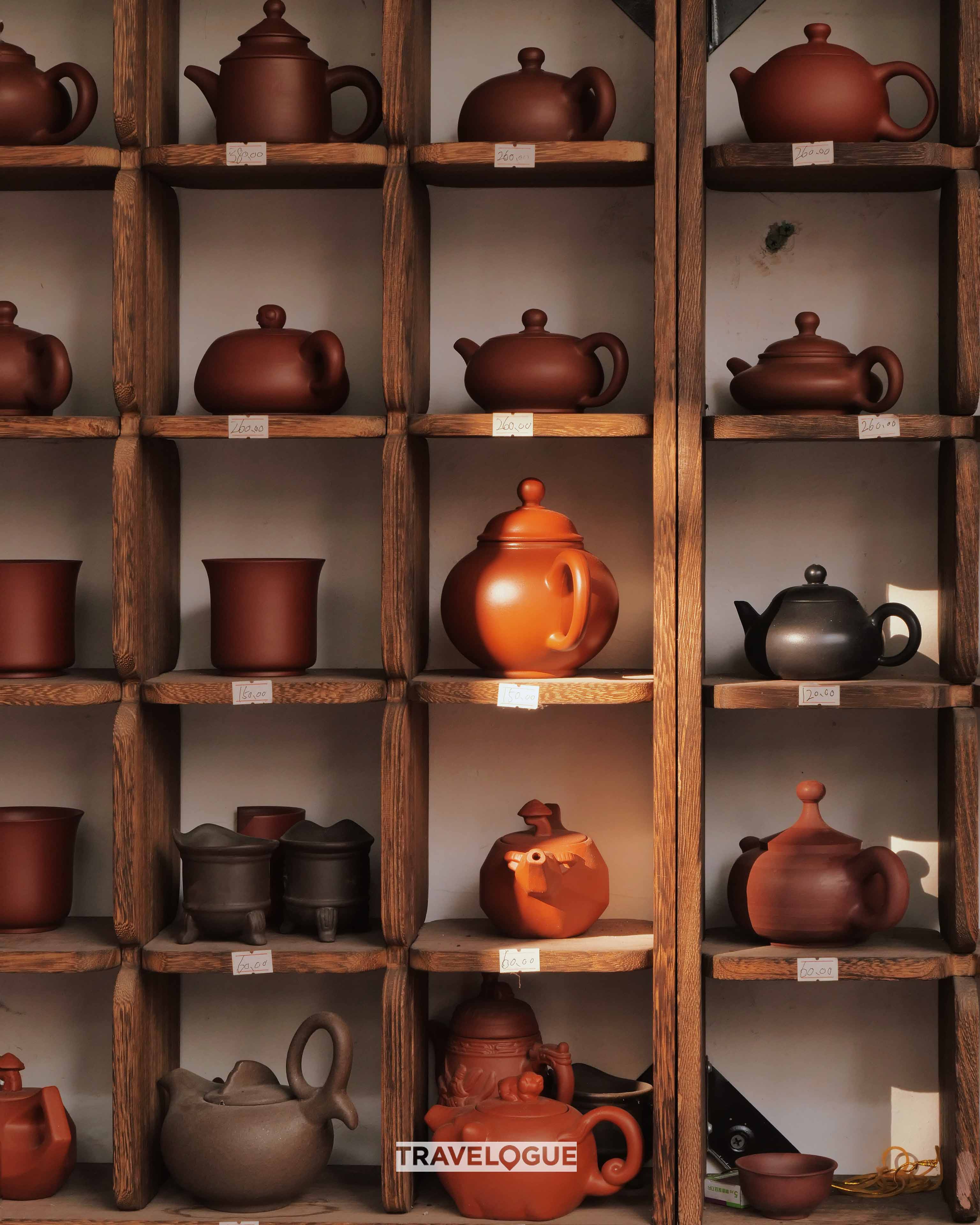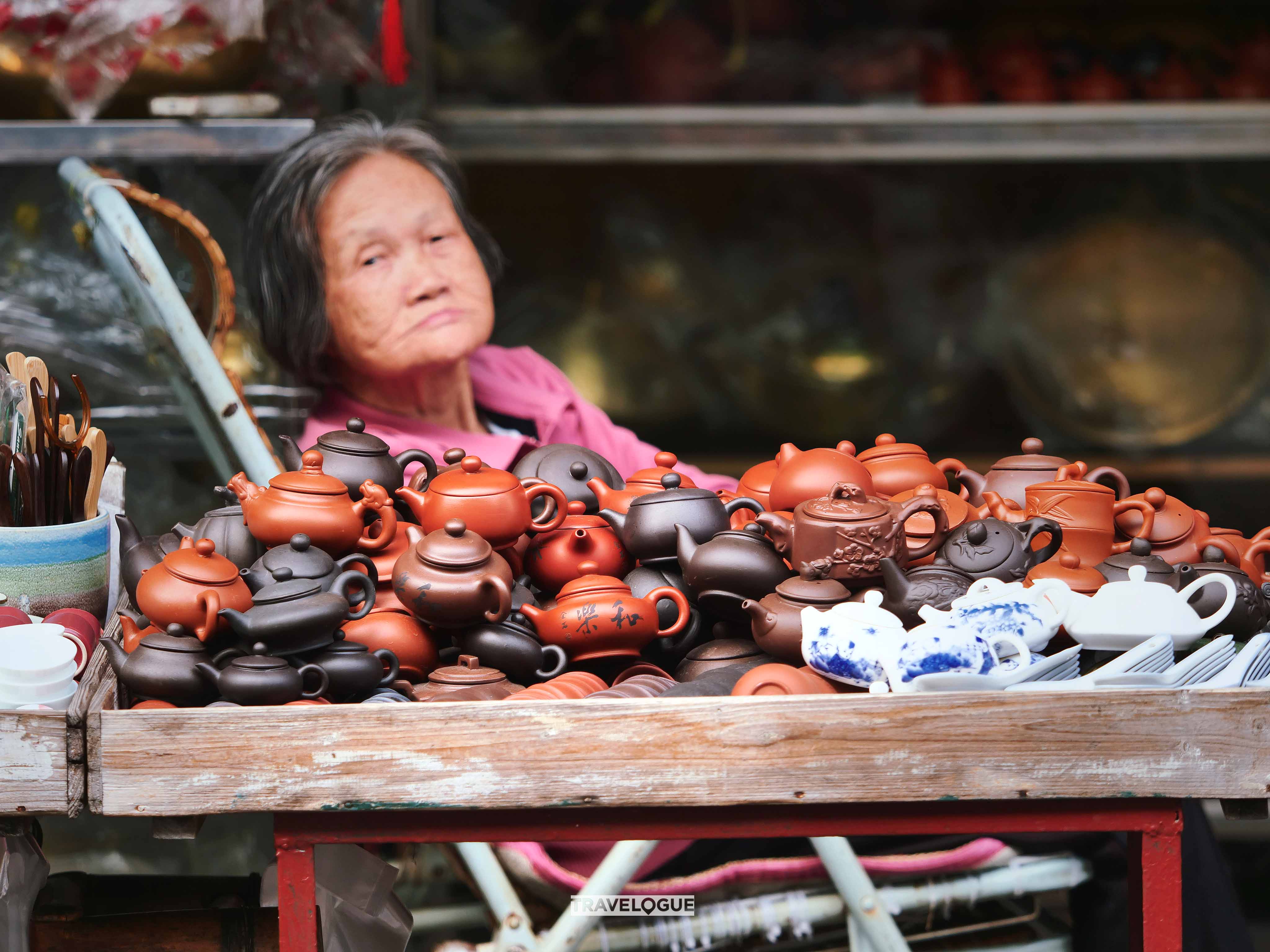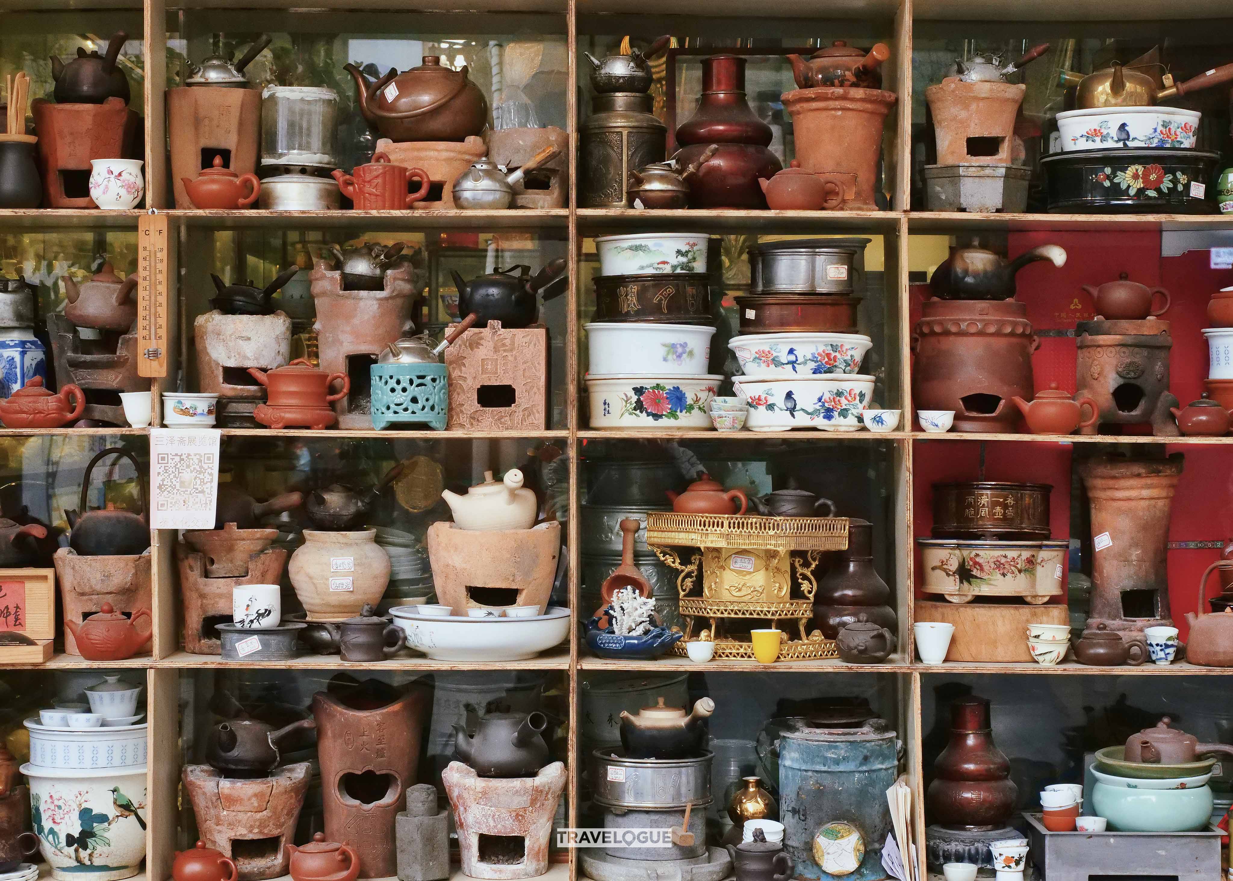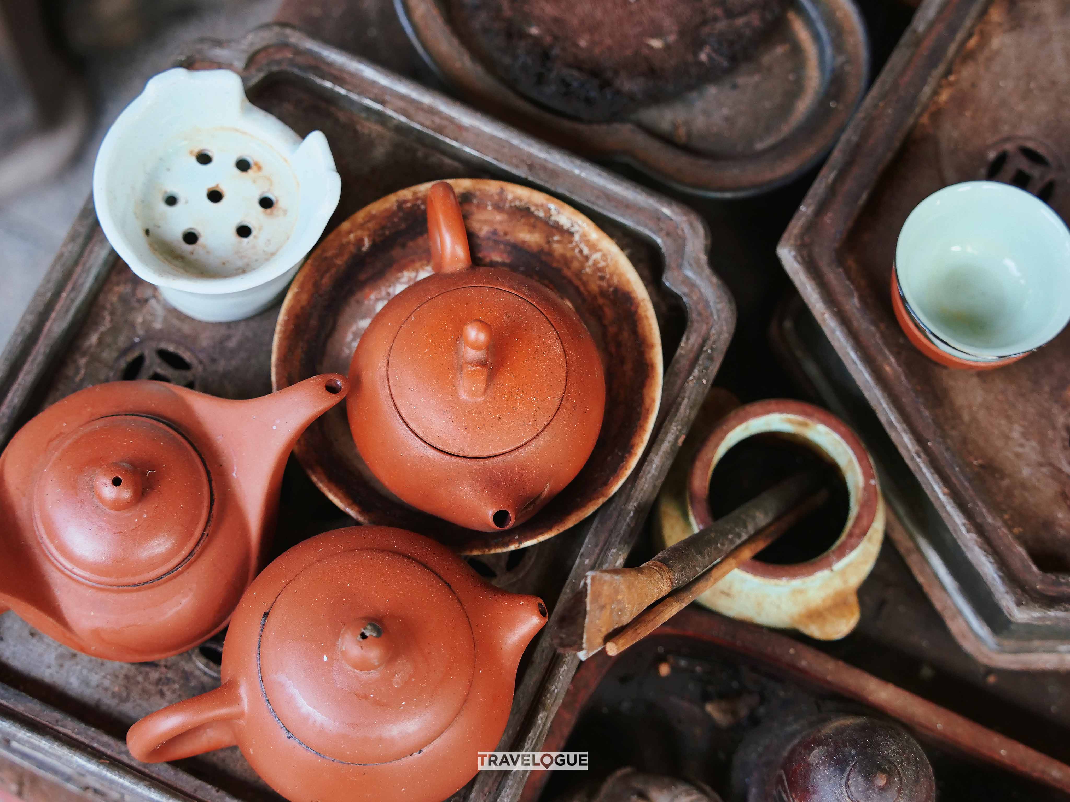 People in Chaozhou are serious about tea. It's common to see individuals and groups sipping their favorite brew at small tables by the side of a road. Of course, good tea requires a good teapot, and there's no shortage of teapots in Chaozhou - from cheap and simple to collectors' items that will break the bank. The sky's the limit!