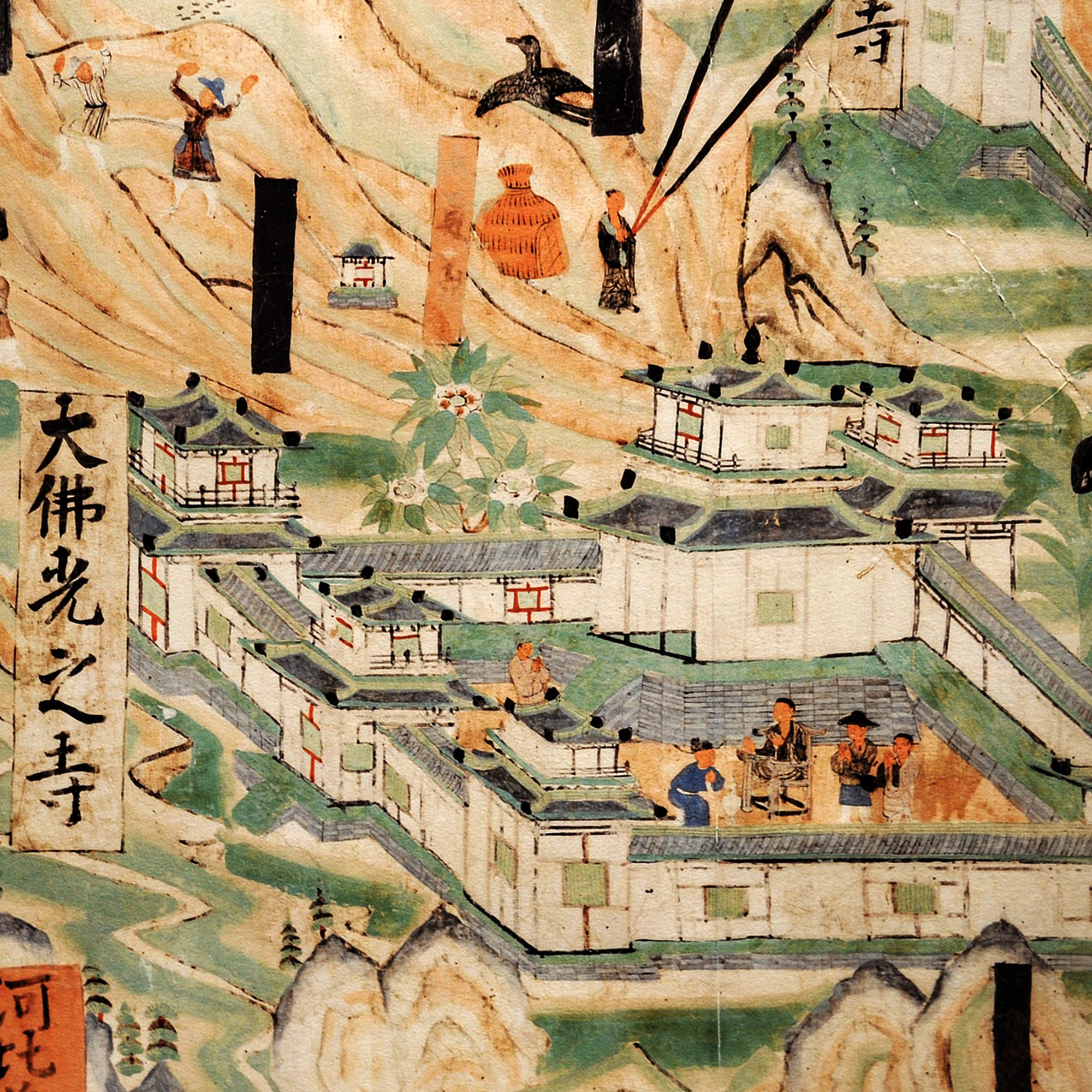 Located in north China's Shanxi Province, Mount Wutai is revered as the home shrine of Manjushri, the bodhisattva of wisdom. During the Tang Dynasty, Mount Wutai attracted many dignitaries and eminent monks. The rapid development of Buddhism led to the establishment of a large number of monasteries. Over 1,000 kilometers away, a mural in Dunhuang's Mogao Caves vividly depicts Mount Wutai, including the renowned Foguang Temple.