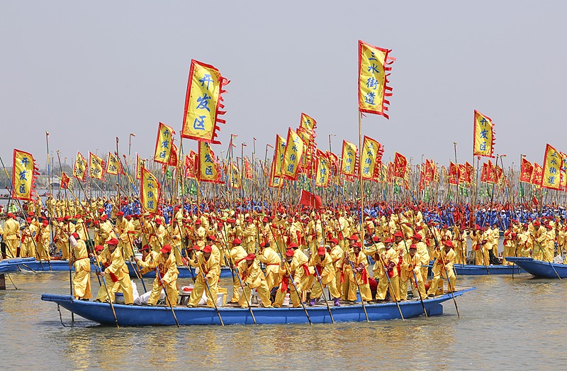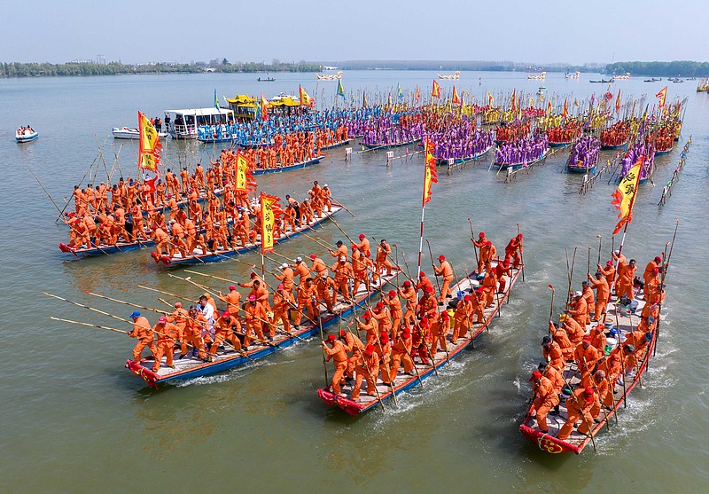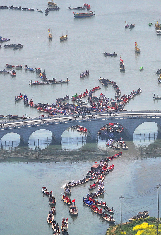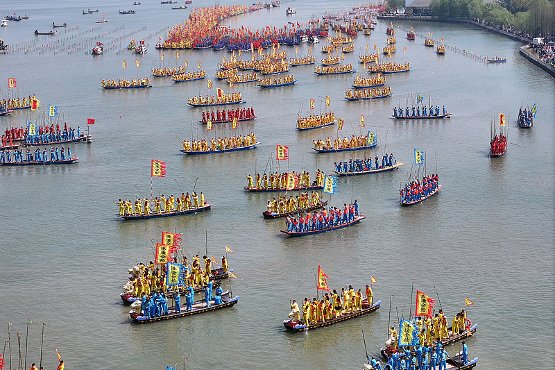 Over five hundred boats with more than 10,000 boat team members on board gathered for the 2025 Qintong Boat Festival held at Qinhu National Wetland Park in Taizhou City, Jiangsu Province. Local residents and visitors cheered on the boat races, creating a passionate atmosphere. This centuries-old tradition is held during the Qingming Festival to honor soldiers in ancient times. Today, it has become a popular activity and a great opportunity for cultural communication.